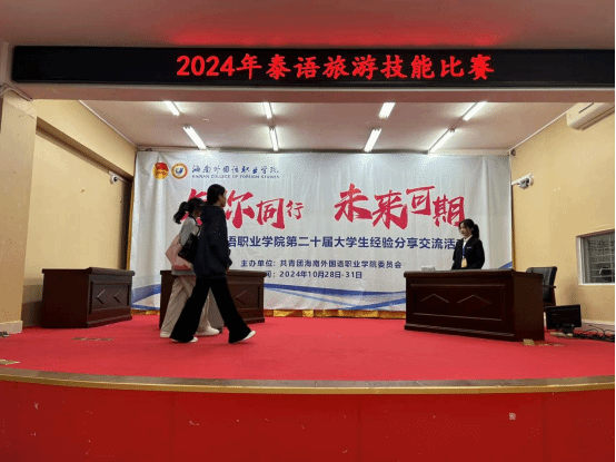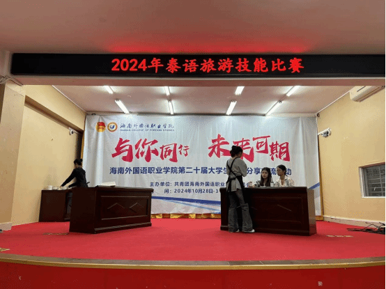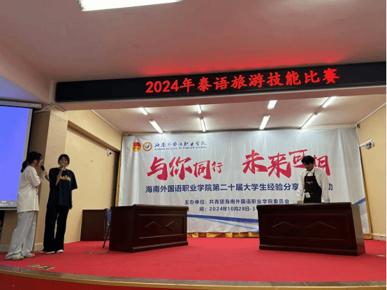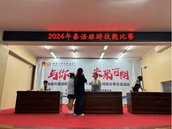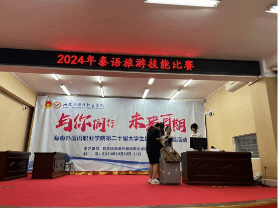 2024年11月11日晚7点半,泰语专业在多功能报告厅举行了旅游技能比赛,23应泰高职及23应泰3+2班的同学们通过角色扮演的方式,为大家呈现了一场独具特色的泰语交流比赛。