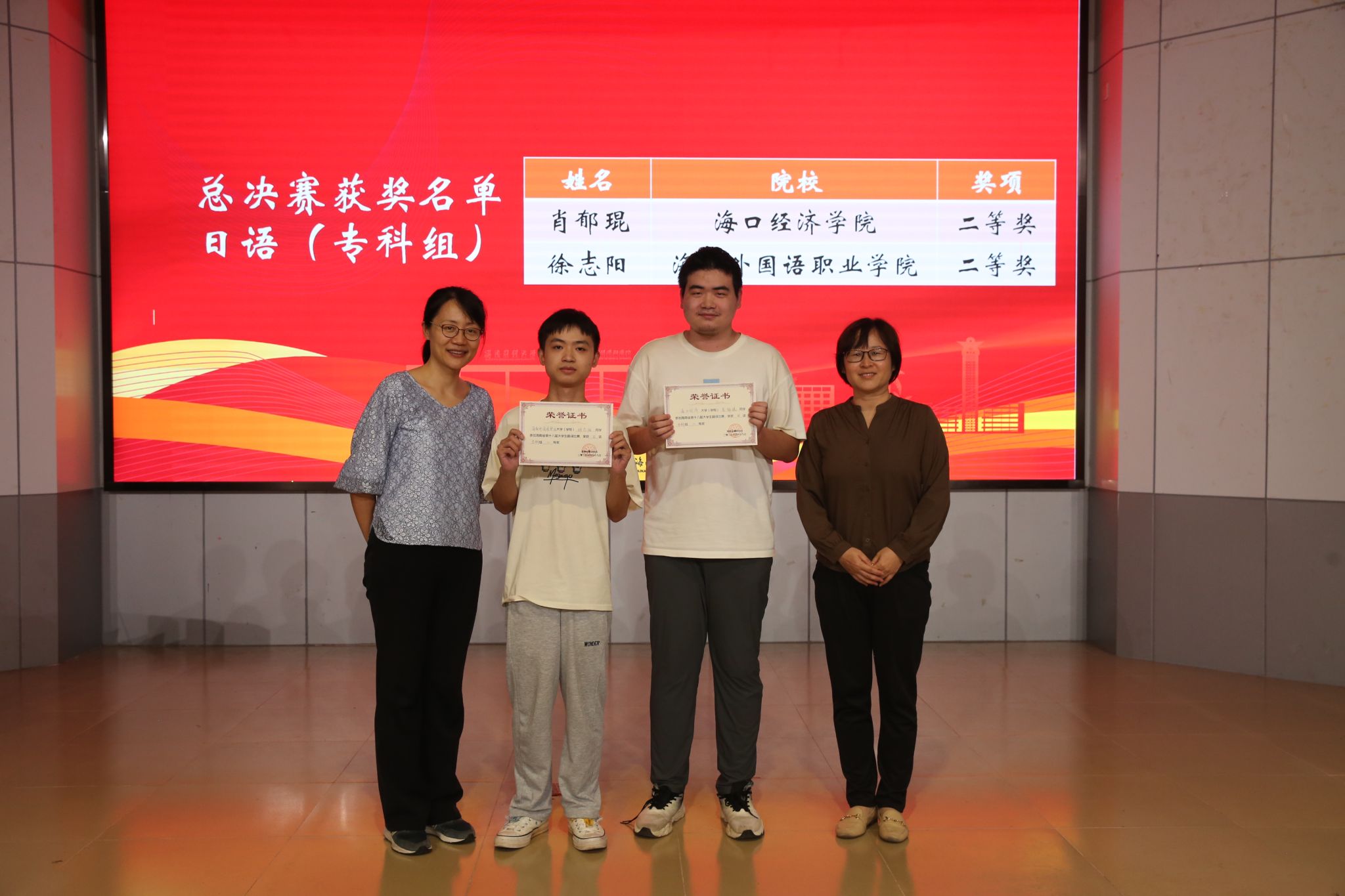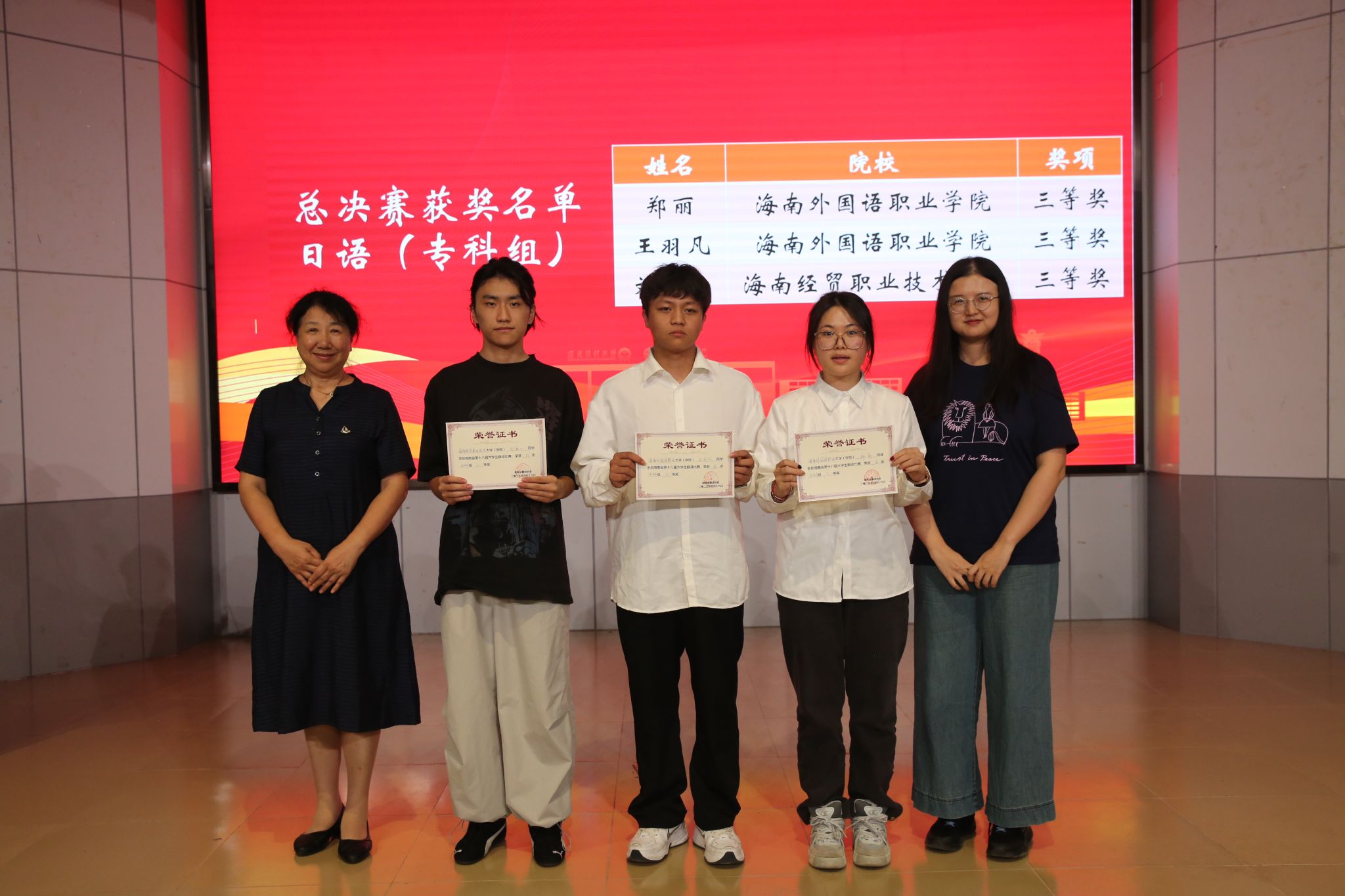 23商日2班王羽凡同学(左三)获得高职组三等奖;23应用日语1班郑丽同学(右二)获得高职组三等奖。