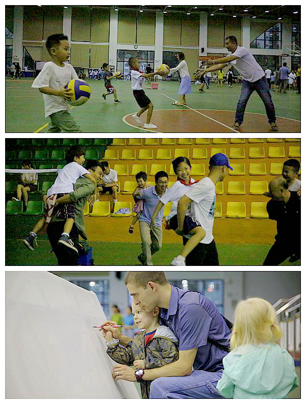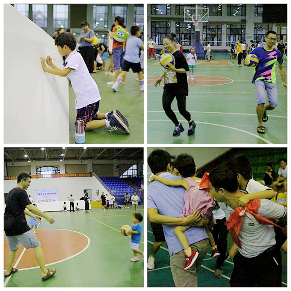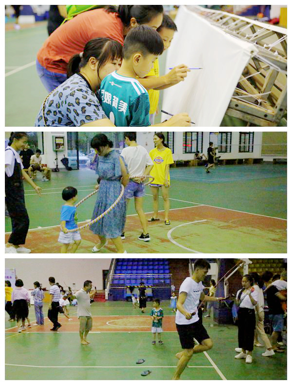 本次活动开展形式丰富多样,共设立了“走进梦想画廊”、“螃蟹走”、“捉尾巴”、“两人三足”、“亲子跳绳”、“母子(父子)接力”六项游戏项目。每项比赛都要求孩子们和父母亲密协作、共同努力才能获得奖品。游戏现场充满孩子们的笑声和尖叫声,画布上展现了孩子们的世界,天真浪漫的想法跃然纸上,父母的帮助让孩子们的画更加生动可爱;也有父母与孩子们的默契配合,互相竞争奖品;“捉尾巴”游戏中,父母们背上孩子,互相追逐,有时两两围攻,有时意在沛公,紧张激烈引得现场尖叫不断;接力赛中,孩子与父母都展示出矫健的身姿,努力奔跑的样子特别认真。