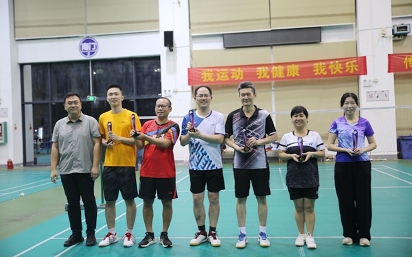 杨毅副校长为beat365第四届教职工羽毛球团体比赛获奖代表队颁奖