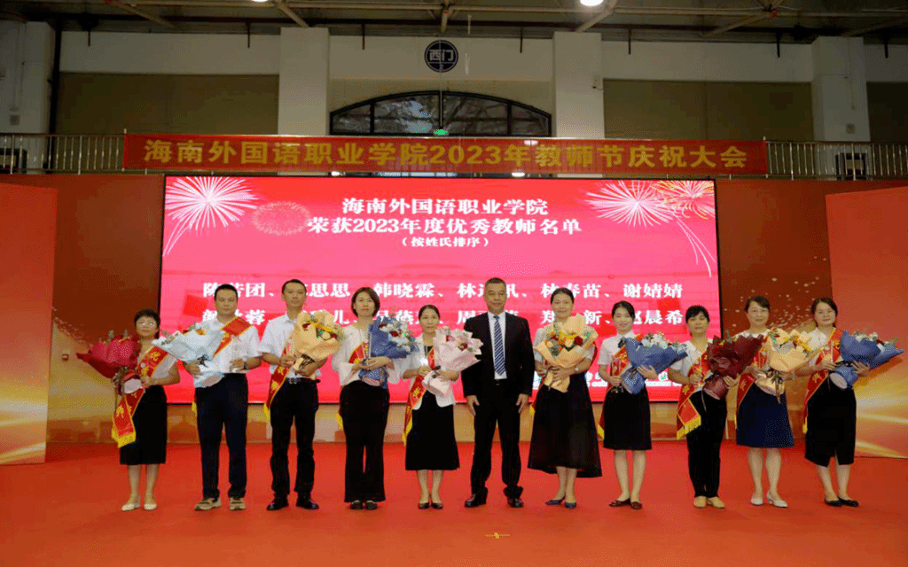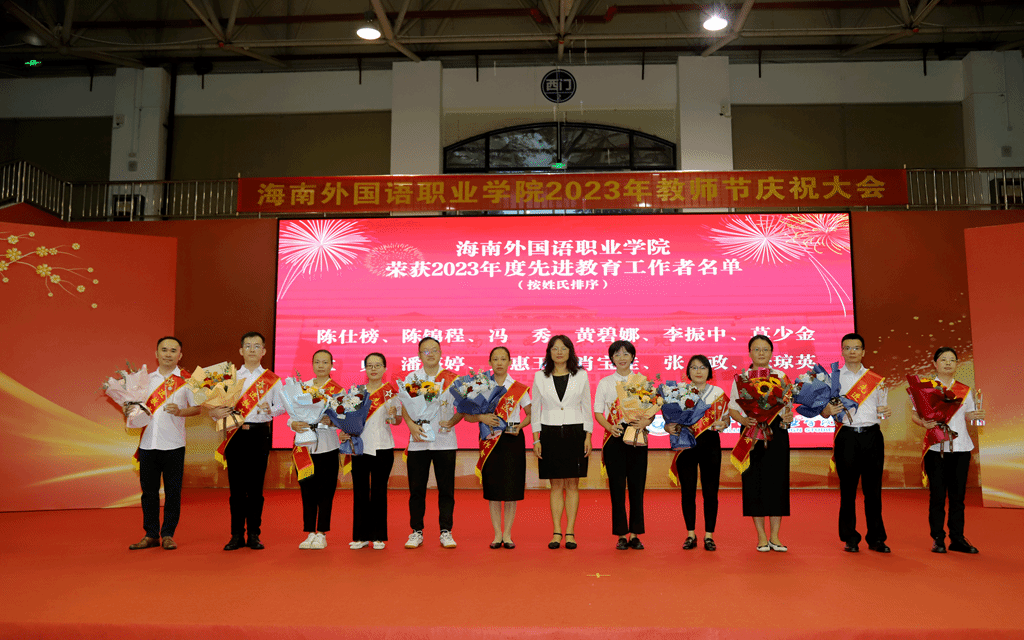 时秀梅为获2023年度先进教育工作者颁发奖章