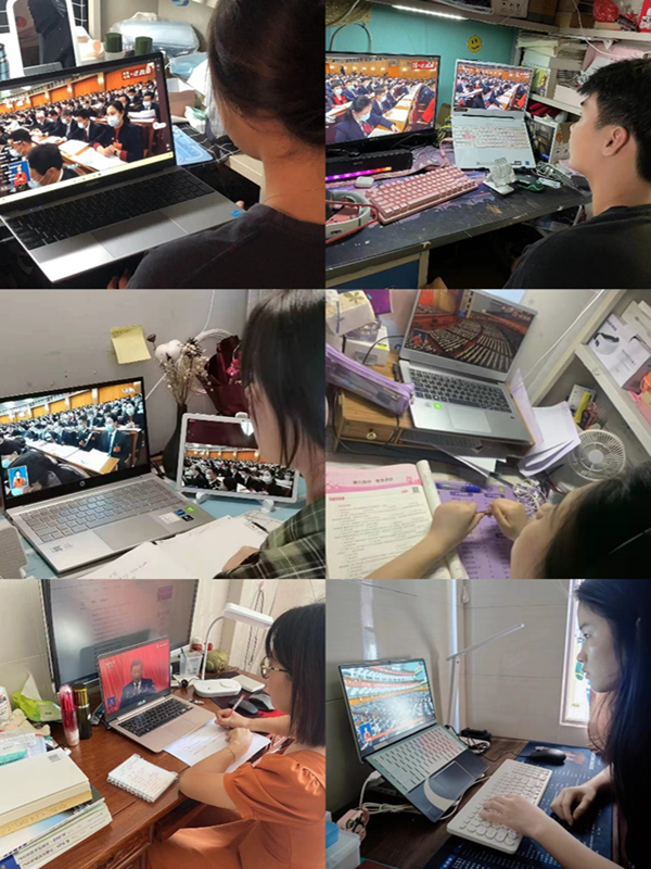 党的二十大是在全党全国各族人民迈上全面建设社会主义现代化国家新征程、向第二个百年奋斗目标进军的关键时刻召开的一次十分重要的大会,是党和国家政治生活中的一件大事。在观看直播现场,党员干部和广大师生边看边做记录,不时以热烈的掌声回应大会精彩报告。