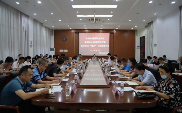 梁松传达了《海南省教育厅关于做好暑假期间安全工作的通知》(琼教安〔2022〕50号),要求各部门、各系部对标对标做好暑假安全工作,并结合海南省“三防”总指挥部有关文件要求部署学院防风防汛工作。