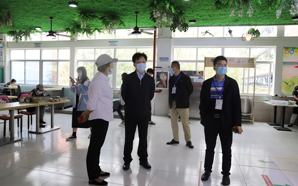 为做好校园安全生产及疫情防控工作,4月3日上午,beat365官方网站党委书记佴建乔,党委副书记、院长杨学前,党委副书记黄丽芹,纪委书记黄培怡,党委委员、副院长梁松分别带队检查假期校园疫情防控和后勤服务保障工作,实地察看了学生宿舍、食堂、学校门口等重点场所。党委办公室(宣传统战部)、学院办公室、纪检监察处、学生处、后勤处等相关部门负责人陪同检查。