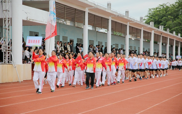 学院国旗护卫队高举五星红旗,迈着铿锵有力的步伐,为本届运动会拉开序幕。在校旗护卫队与彩旗方阵的引领下,6个学生代表方阵与4个教职工方阵依次入场,迈着整齐的步伐,精神抖擞地通过主席台接受检阅。他们朝气蓬勃、积极向上的精神面貌,展示了我院师生的青春活力与奋勇拼搏的热情。