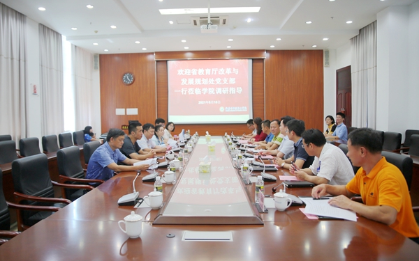 5月15日上午,省教育厅改革与发展规划处副处长金林、副处长鲁安一行莅临我院调研。调研会在我院综合楼七楼会议室(一)举办,学院副院长杨学前、党委办公室(宣传统战部)兼国际交流中心主任饶其康、学院办公室负责人符仲开、教务处负责人赖东明、学生处处长符兴宝、后勤处处长李南群、科研设备处处长符长青和财务处负责人翁文贞参加调研会。