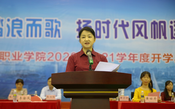 立自贸潮头踏浪而歌,扬时代风帆逐梦前行。10月29日下午,我院2020级新生开学典礼在体艺馆举行,院长李渝凤、党委副书记黄丽芹、副院长杨学前、副院长梁松,以及全体中层干部、教职工代表、全体新生和老生代表参加开学典礼。开学典礼由杨学前副院长主持。