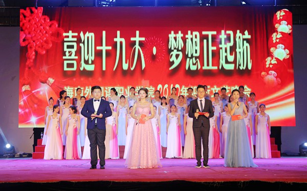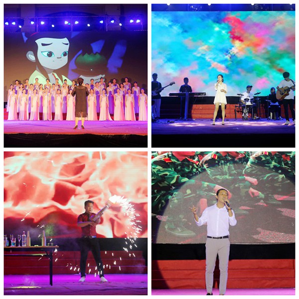 开学典礼结束后,随即进行迎新文艺表演。学院合唱团合唱《想你的365天》开启晚会序幕。工装礼仪展示的《炫动青春•点燃梦想》以欢快的步伐加上富有节奏感的背景音乐,让现场的气氛马上活跃起来。歌曲《相亲相爱》更把观众的情绪推向高潮,音乐已止掌声未停。为展示海南独特魅力,舞蹈《海南美美哒》以欢快又柔美的形式,将一个阳光岛、健康岛、国际旅游岛带到我们眼前。一首《歌曲串烧》唱出了不同风格的音乐,让同学们仿佛看到了音符在五线谱上跳动时的嫚姿。“用铁锤砸碎黑暗,用镰刀收割光明”,配乐朗诵《青春中国》带给同学们一种震撼,让同学们不禁感慨不同时期青年同学一样的爱国情怀。舞蹈《海上升明月》通过舞蹈与舞台特效的结合,向同学们展示了文昌的航天文化,提高了同学们对航天的认识和了解。在二重唱《祖国万岁》歌声中,同学们仿佛看到了五星红旗在迎风飘扬,看到了一幅祖国繁荣昌盛的画卷。终场舞蹈《起航》给予每位同学希望,希望同学们用青春杨帆,让梦想起航。