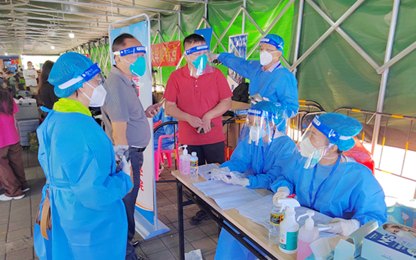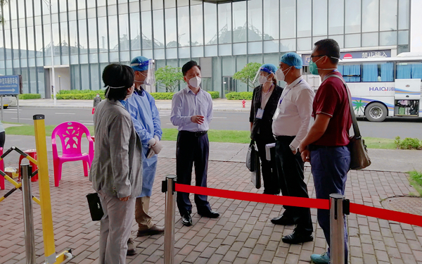 学校党委委员、副校长梁松,党委委员、副校长杨毅分别来到美兰机场和海口火车站,现场指导学生返校接待和疫情防控工作。在接待点,他们与教职工志愿者和现场等待核酸结果的同学亲切交谈,送去学校的关心和问候;同时,实地了解接待点工作情况,现场协调解决出现的问题,确保学生平安、顺利返校。