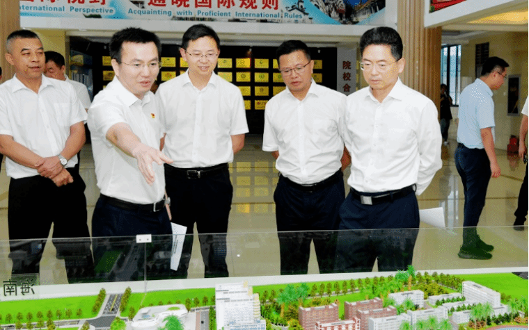 4月11日下午,文昌市委书记龙卫东、市长刘冲率队莅临beat365,调研东校区建设用地征收拨付情况。文昌市委常委,市纪委书记、市监委主任王元春,文昌市委常委、文城镇党委书记王一杨,学校领导陈正强、黄学彬、梁松、时秀梅、邓颖颖、曾盛陪同调研。