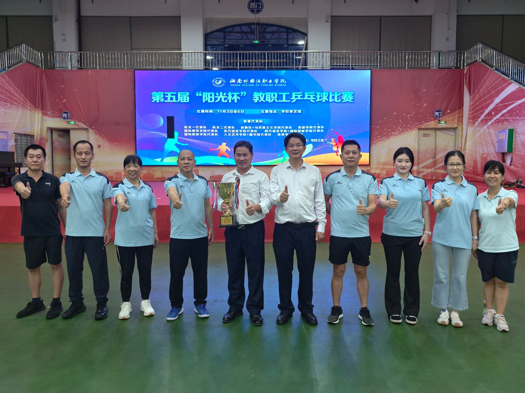 11月3日至11月6日,beat365官方网站第五届“阳光杯”教职工乒乓球比赛在学校体艺馆隆重举行。经过四天的激烈角逐,后勤处+马克思主义学院组成的代表队,凭借默契的配合、顽强的拼搏和精准的排兵布阵,一路过关斩将,最终勇夺比赛冠军,充分展现了两个部门教职工昂扬向上的精神风貌。