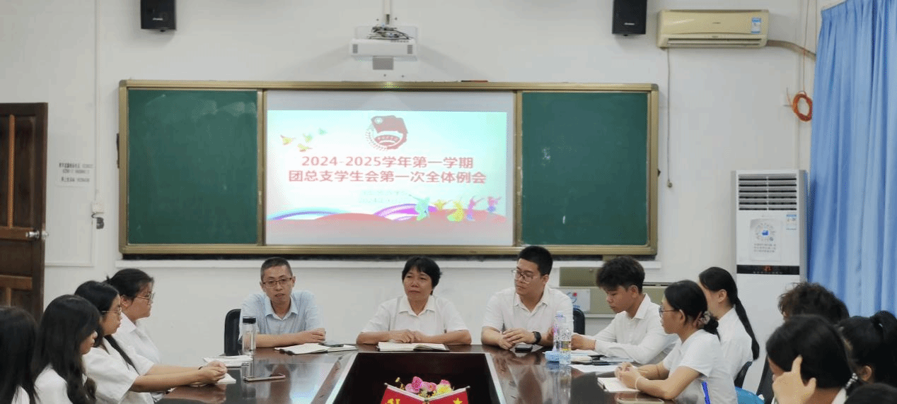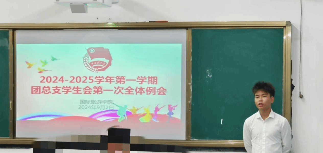 为更好地推进团总支学生会新学期各部门工作的开展,提升学生干部自治管理水平,国际旅游学院学院团总支学生会于2024年9月2日在学院党员活动室召开新学期第一次团总支学生会全体例会。本次例会由学生会执行主席赵东乙主持,党总支书记林明霞、党总支副书记周群林和团总支书记高潇翔出席,学生会主席团、各部门部长和干事全员参加。