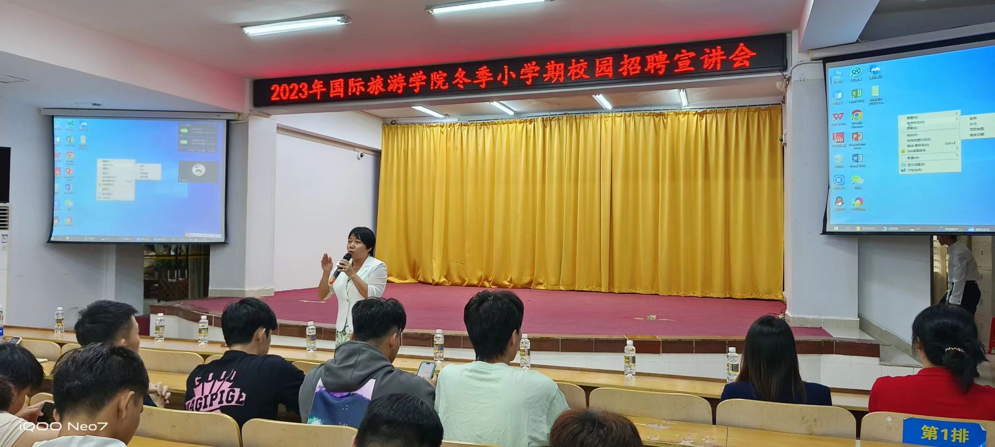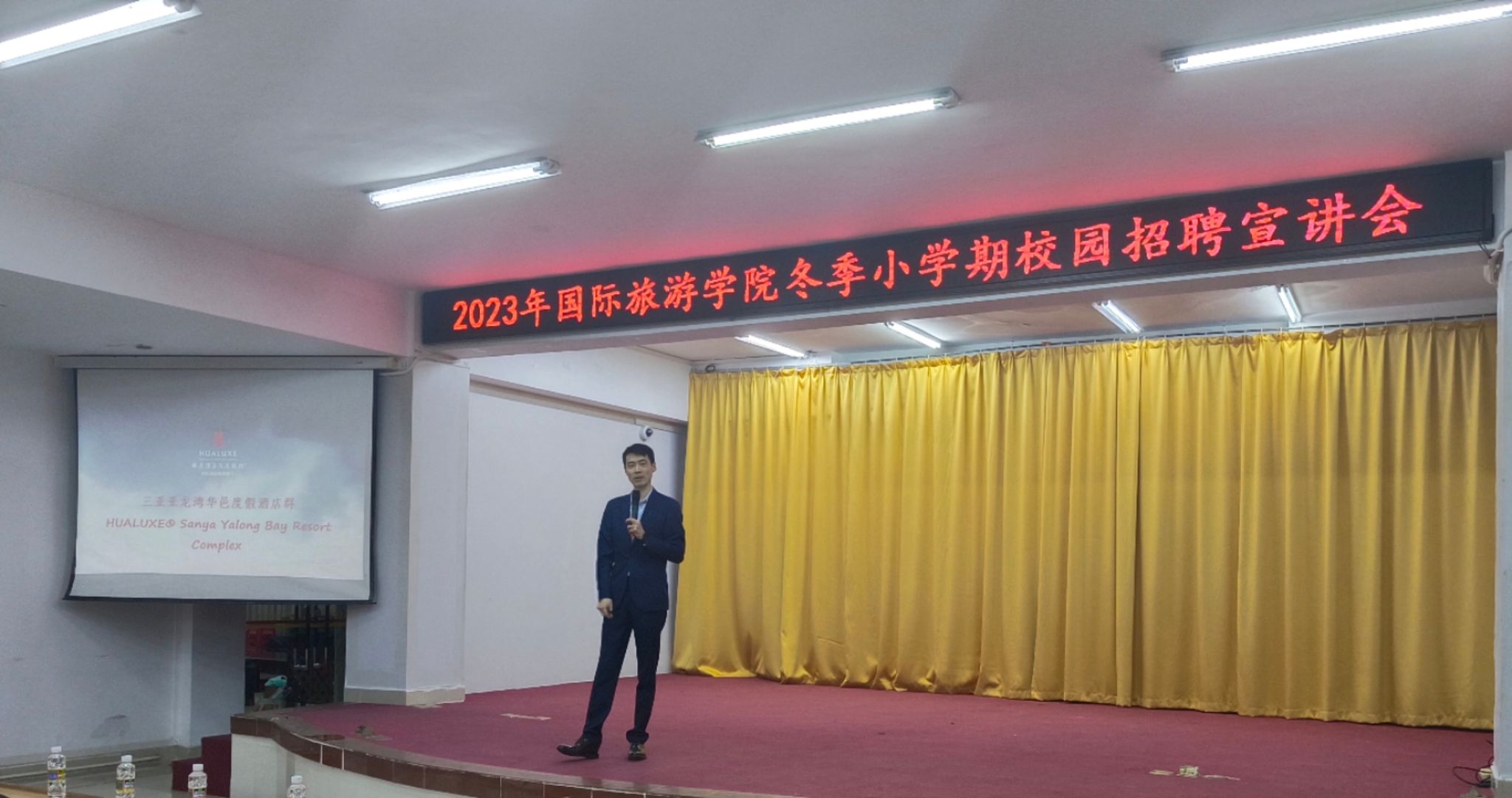 为进一步促进校企合作,帮助同学们更加深入了解当前就业形势,为同学们提供多元化的实习就业选择。同时,为增强同学们的社会竞争力,架起学生与企业沟通的桥梁,搭建学生求职交流的平台,国际旅游学院特利用冬季小学期于11月14日上午在多功能报告厅举办2024届(高职)毕业生实习企业宣讲会。
