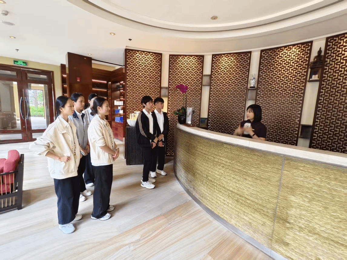 在企业课堂中,酒店培训经理娓娓道来丽思卡尔顿的品牌文化——“Ladies and Gentlemen serving Ladies and Gentlemen.” 这句传承百年的信条,不仅定义了服务的高度,更诠释了人格的尊严与职业的荣耀。学生们聆听品牌故事,参观前厅、客房、餐饮、康乐等核心部门,在真实的运营现场中体悟“细节成就卓越”的奥义。