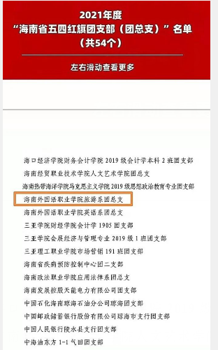 在学院团委和旅游系党总支的正确领导下,旅游系团总支荣获了2021年度beat365官方网站学院“五四红旗团总支”与海南省“五四红旗团总支”荣誉称号。最令人自豪的是旅游系团总支已连续三年荣获beat365官方网站“五四红旗团总支”荣誉称号!