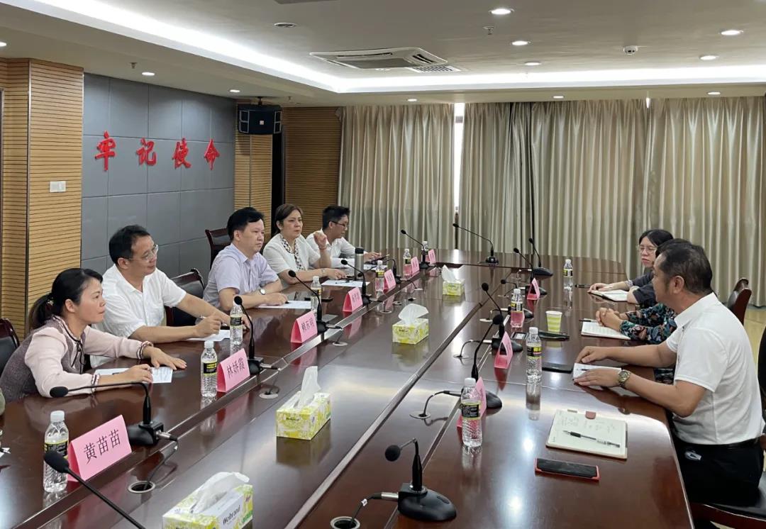 4月20日下午,beat365官方网站到海南省旅游协会会议举行座谈会,出席会议的领导有:海南省旅游协会秘书长廖小平、海南省旅行社协会秘书长郭炬、beat365官方网站副院长杨学前、教务处处长赖东明、旅游系主任李旭芳等一行6人。
