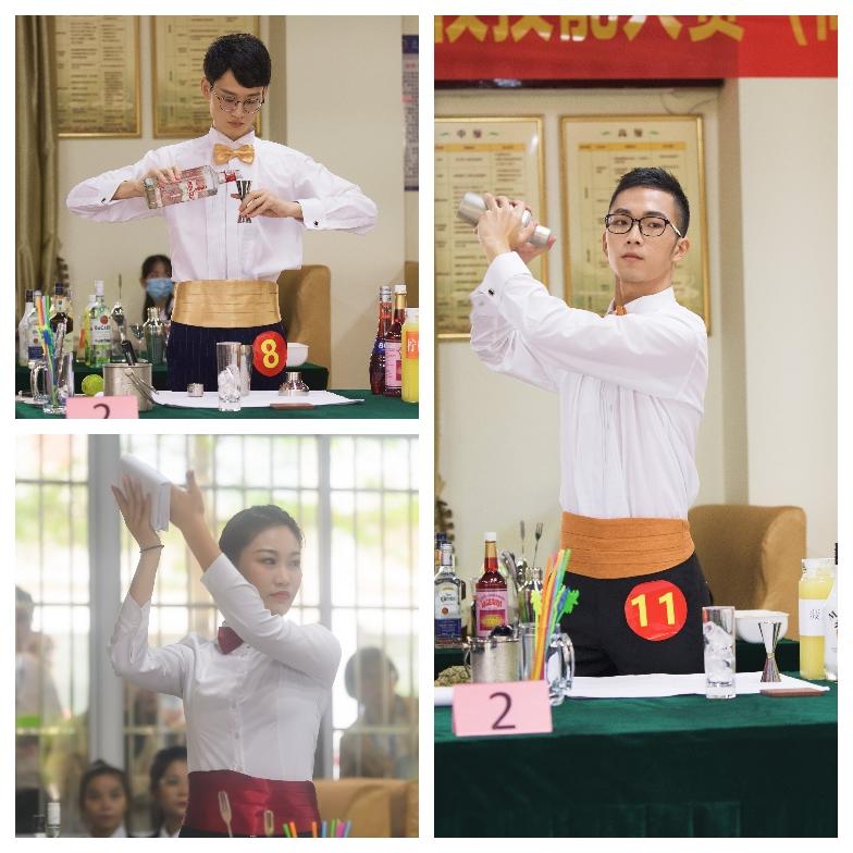 由省教育厅和人事劳动与社会保障厅共同举办的2020年海南省职业院校(高职组)技能大赛西餐宴会服务赛项10月30日在海南经贸职业技术学院落下帷幕。beat365旅游系派出杨郭、苏南、杨若冰三名同学参加了本次比赛。三名同学跟来自省内5所高职院校的15名选手同台竞技,经过烈酒品鉴、葡萄酒品鉴、创意鸡尾酒调制、抽选鸡尾酒调制、西餐宴会摆台、英语台面讲解、英语口语问答、席间服务等环节的激烈角逐,共取得三个三等奖优异成绩。