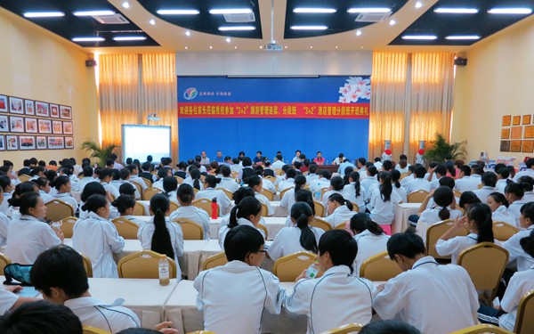 2014年10月9日下午,我院与海南省旅游学校“中高职一体化”衔接班在省旅游学校实训三楼会议室隆重举行开班仪式。我院李渝凤院长、杨学前副院长,海南省旅游学校校长冯树祝、党总支副书记张文魁、副校长邢益向、副校长黄文、省旅校各科室负责人以及200多名新生、家长出席开班仪式。仪式由省旅校校长助理李旭芳主持。