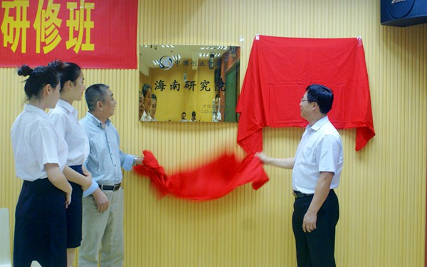 中国创业智库理事长赵延忱和我院党委书记陈礼民共同为“中国创业智库海南研究院”、“中国创业智库DMC创业教育与实训海南基地”揭牌
