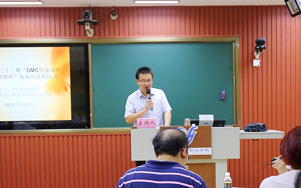 中国创业智库理事长赵延忱对研修班顺利开班以及“中国创业智库海南研究院”、“中国创业智库DMC创业教育与实训海南基地”落户我院表示祝贺。在致辞中,他生动阐述了创业教育、创业培训的基础问题,即创业是什么、创业教什么、教育为什么,并提出大学生创业教育要抓住实践教育、改善创业环境以及健全创业服务,指出本期研修班根据高校开展创业教育的实际需要而开办,希望学员们认真学习,学有所用,在今后的岗位上积极发挥一专之长。