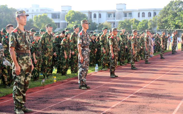 会上,学生处黄守剑处长宣布军训中队编制,并介绍文昌市公安边防支队承训的20名教官;受训新生代表上台发言,代表2014级新生向领导、老师和教官们做出郑重承诺,她表示,全体新生将尊重教官,服从命令,听从指挥,不畏困难,勇于争先,自强自立,互助友爱,爱护集体,百折不饶,超越自我,以优异的成绩向学院、教官汇报。最后,由莫运深副书记宣布2014级新生军训正式开训。