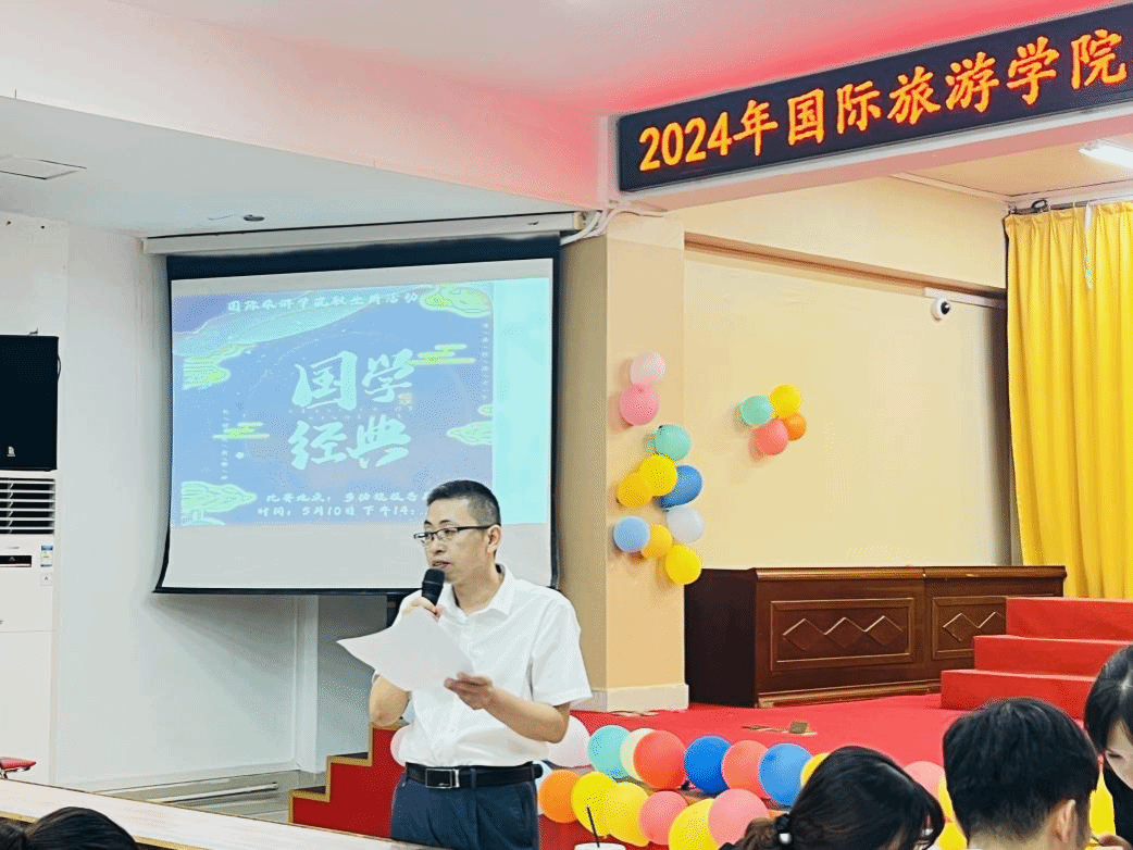 浩瀚五千年,文化一脉承。为传承和弘扬中华优秀传统文化,引导同学们在诵读过程中感悟文化经典、领会民族精神、坚定文化自信,让经典文化的传播根植在心,“声声”不息,5月10日下午,我院在多功能报告厅顺利举办国学经典朗诵比赛。本次比赛由我院办公室主任张文珺老师、导游比赛优秀指导教师陈柏仰老师、酒店管理教研室陈艳老师担任评委。我院党总支书记林明霞、副书记周群林莅临比赛现场。