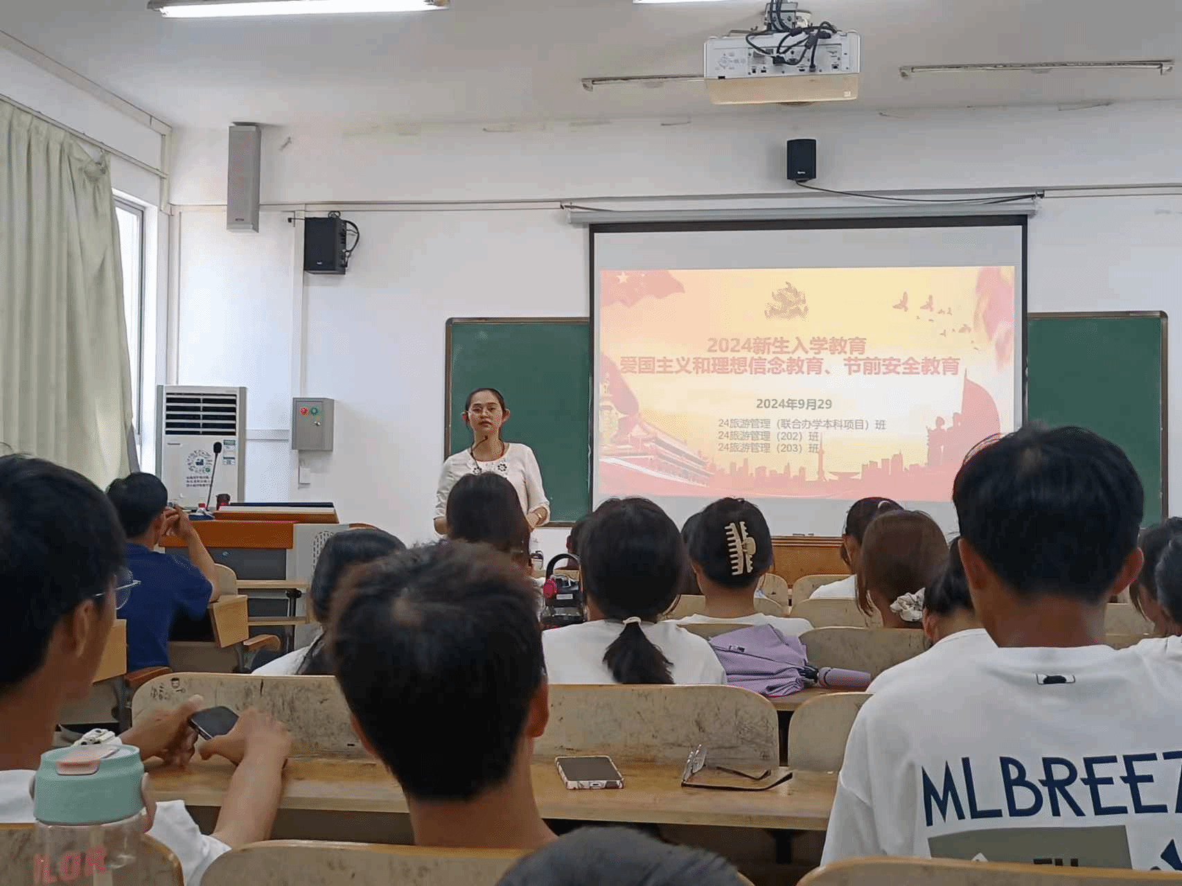 为引导和帮助2024级新生更好适应大学生活,做到理想信念坚定、发展目标明确、个人定位清晰和成长基础坚实,9月29-30日,国际旅游学院集中开展为期两天的2024级新生入学教育,我院党总支书记林明霞、副院长谢孟、副书记周群林、全体新生班级辅导员班主任新生和全体2024级新生参加。