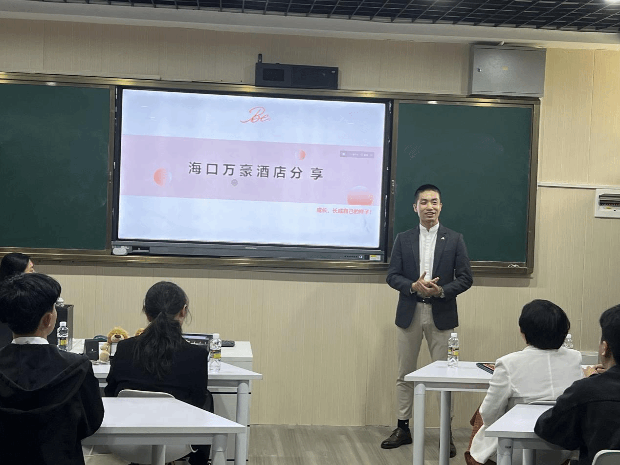 开班仪式上,袁金龙详细介绍了万豪品牌的特色与人才培养优势,并通过丰富的案例与实际经验分享,为学生们勾勒出酒店行业的职业蓝图。现场气氛热烈,学生们踊跃提问,总监耐心解答了关于酒店工作内容、职业发展路径等问题,为大家解开了心中的疑惑。