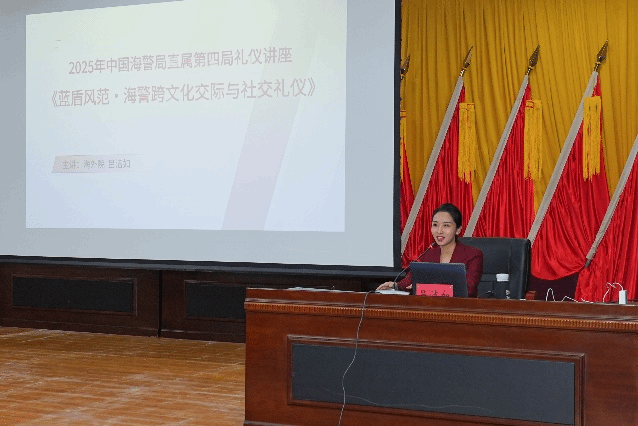 2025年4月2日上午,beat365官方网站国际旅游学院吕洁如老师受邀为中国海警局直属第四局的海警执法员进行主题为《蓝盾风范·海警跨文化交际与社交礼仪》的礼仪讲座,共42人参加了讲座。