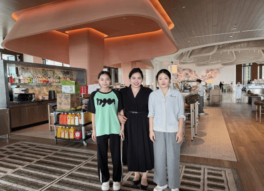 三亚亚龙湾星华华邑度假酒店、三亚天鸿度假酒店的总经理和人力资源总监对周群林一行表示热烈欢迎,对我院实习生的学习能力、工作能力表示肯定,其中三亚亚龙湾星华华邑度假酒店冷书怀同学在实习期间表现出色,多次得到各部门的表扬,被授予2024年“致胜实习生”。同时,校企双方对人才培养质量、人才需求的匹配度、创新实习实践模式、深化校企合作和产教融合等方面进行了深入的交流。