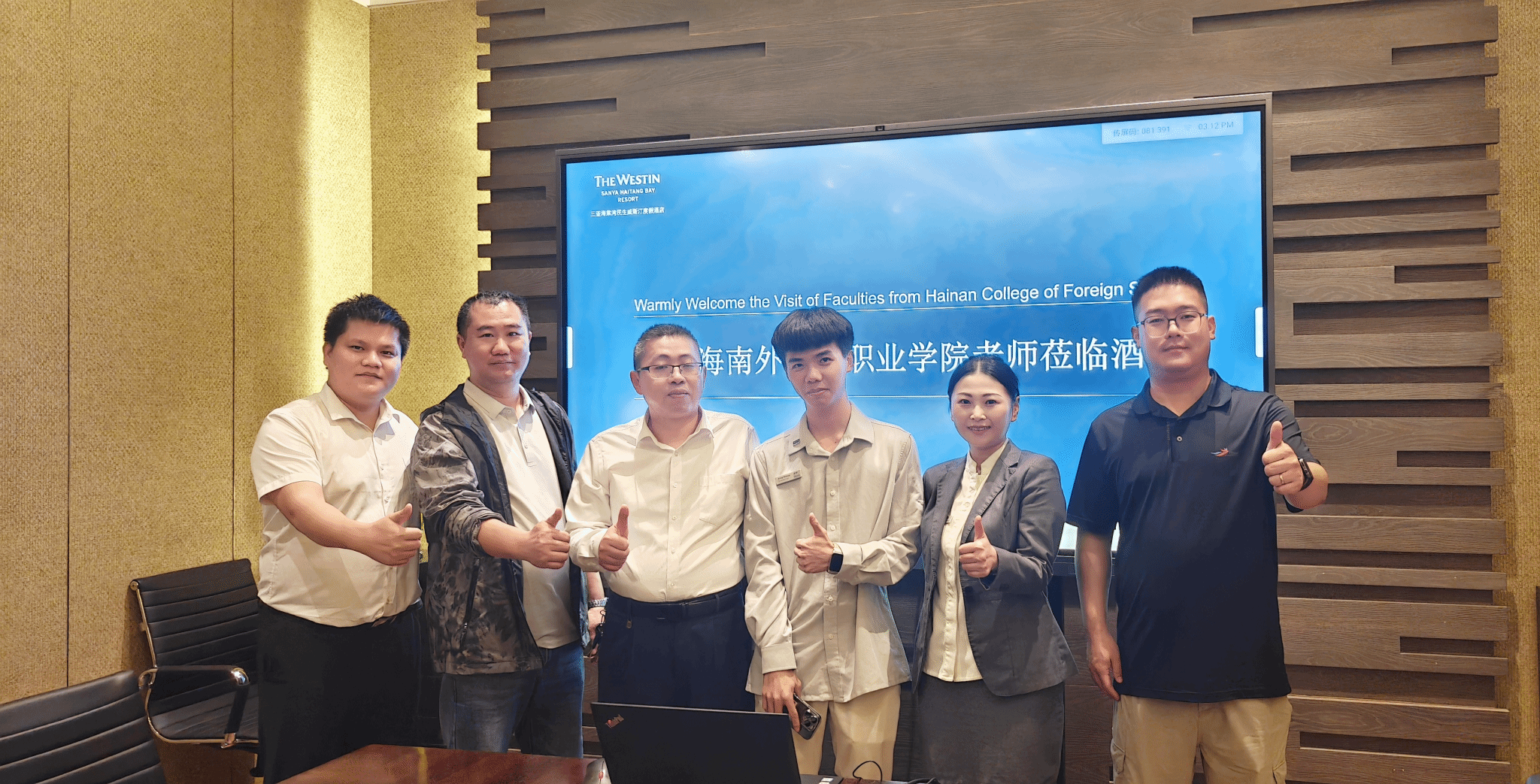 为深化校企合作、深入了解学生实习就业情况,2025年11月25日,国际旅游学院党总支副书记周群林带队,第三党支部书记倪禹、学生科科长陈奕埔、团总支书记高潇翔一行四人前往三亚亚特兰蒂斯酒店和民生威斯汀度假酒店进行访问,并亲切看望了在岗实习的学生。