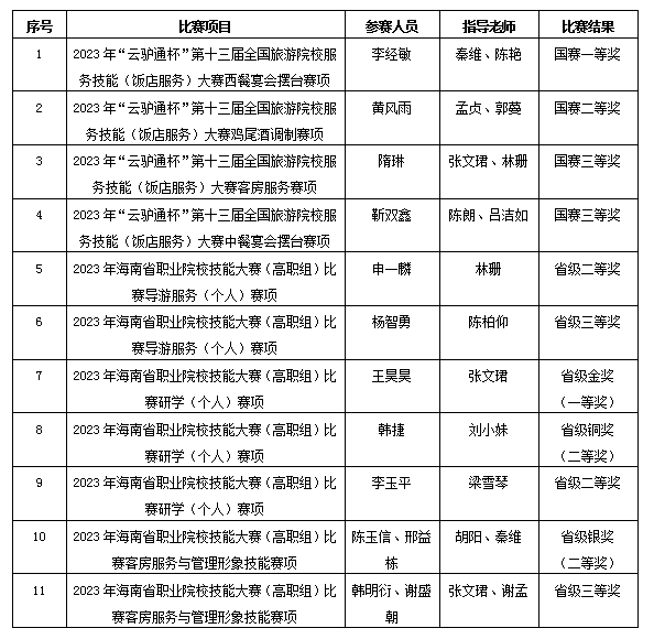 提高旅游服务人才培养质量,学生赛事荣获佳绩