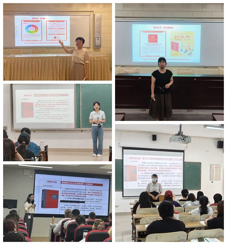 为深入学习贯彻习近平法治思想、习近平总书记关于加强民法典学习宣传的重要指示精神,让民法典融入思政课堂,增强学生的法治素养,按照“民法典宣传月”活动要求,2024年5月,马克思主义学院组织开展“美好生活·民法典相伴”民法典进思政课堂活动。
