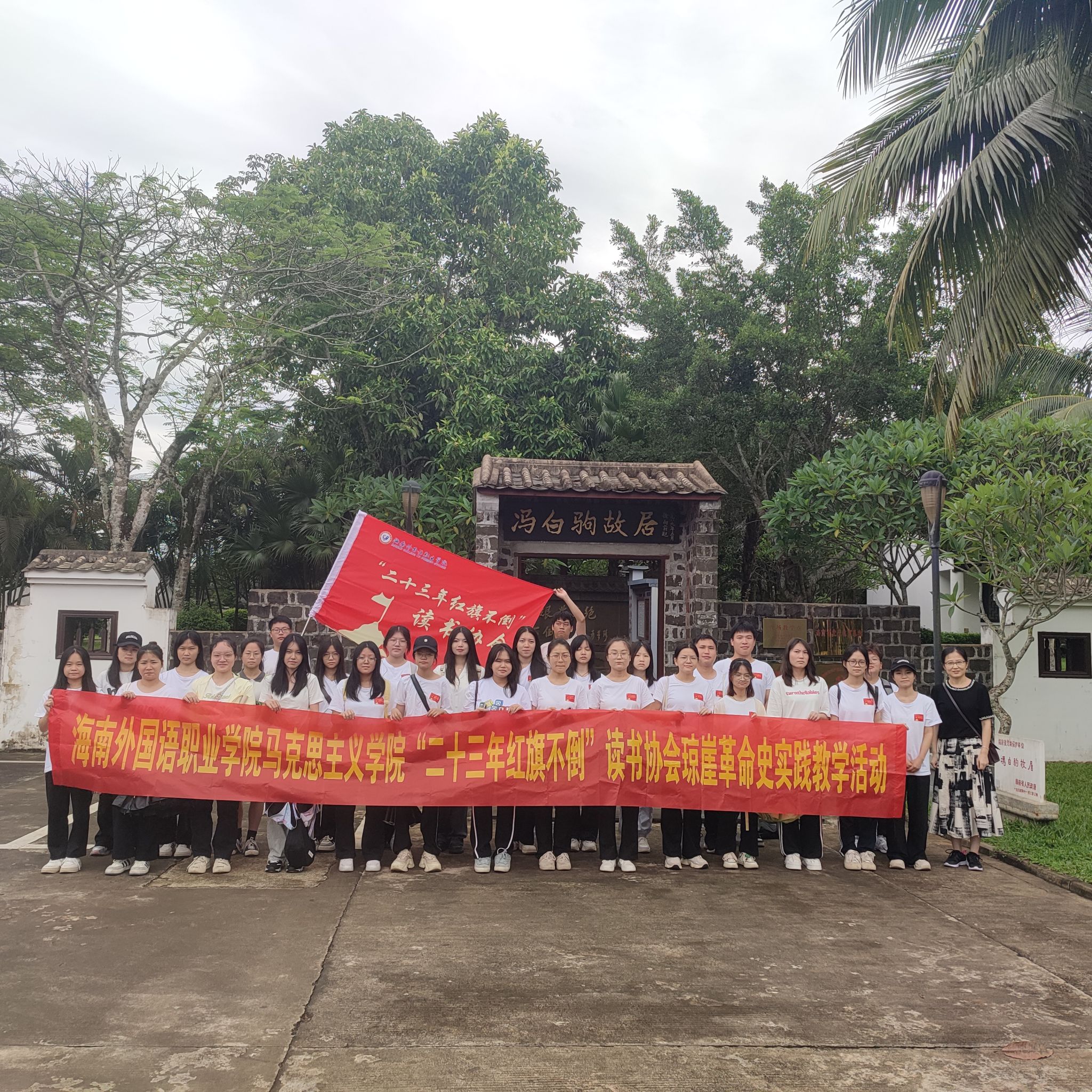 为深入学习习近平新时代中国特色社会主义思想,学习琼崖革命史,加强大学生理想信念教育,弘扬“二十三年红旗不倒”革命精神,5月25日马克思主义学院“二十三年红旗不倒”读书协会30名会员在指导教师赵佳钰、张敏的带领下,到冯白驹故居、海南省博物馆和海南省史志馆等举行学习琼崖革命史实践教学活动。