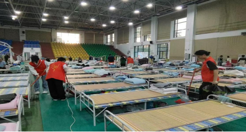 在beat365官方网站体育馆,共有700多名来自云南昆明供电局、云南玉溪供电局等单位支援文昌复电工作人员在这里临时居住。马克思主义学院学生思政社团的同学看到宽阔的体艺馆里整整齐齐摆放着七百多张简易床,内心被深深震撼了,情不自禁地与其他学院学生一起,尽力尽力地帮救灾支援工作人员打扫卫生和整理内务。他们有的扫地板,有的收垃圾,有的帮忙叠被子和整理床位。在志愿服务过程中,同学们被支援工作人员的忘我工作精神、无私奉献精神所打动,真正体会到“一方有难,八方支援”中华民族的传统美德。