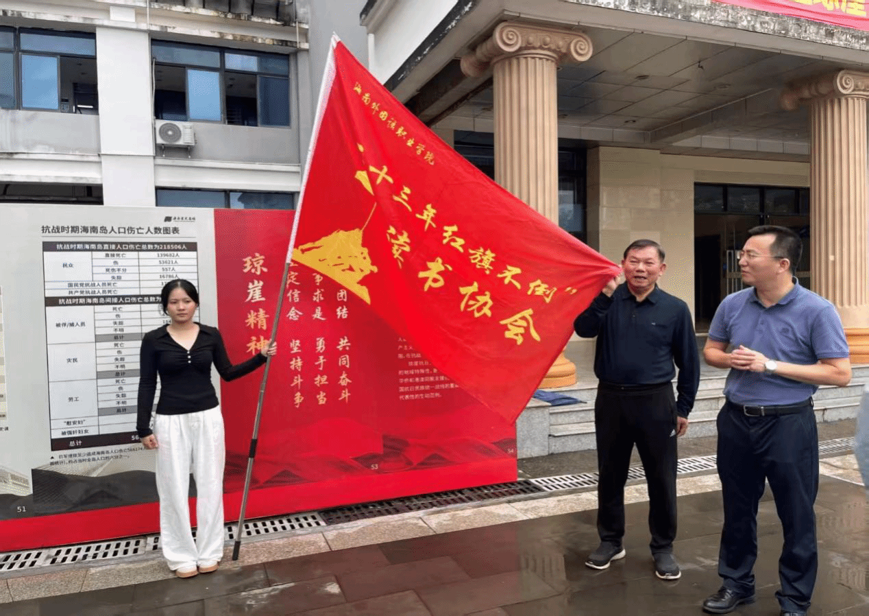 2025年10月30日,“二十三年红旗不倒”读书协会邀请关工委韩祝畴主任在学校联合海南省史志馆举办的“纪念中国人民抗日战争暨世界反法西斯战争胜利80周年”主题展览,中为会员们宣讲琼崖人民抗日战争胜利的光辉历史。韩祝畴主任激情洋溢、声情并茂地讲述了全民族抗日战争时期,中共琼崖特委及其领导的琼崖抗日武装力量坚决执行中国共产党全面抗战的路线,广泛发动群众,建立敌后抗日根据地,开展游击战争,成为琼崖抗战的中流砥柱,陷日本侵略者于人民战争的汪洋大海之中,取得了琼崖抗日战争的伟大胜利。宣讲结束时,学校党委书记陈正强勉励会员们要铭记历史、缅怀先烈、珍爱和平、开创未来,他要求会员们认真学习党史、新中国史、改革开放史、社会主义发展史、中华民族发展史。他说:海南自贸港全岛封关将于12月18日正式启动,希望同学们在宝贵的青春年华里,认真学习科学文化知识,提高专业技能,培养创新思维,以“功成不必在我”的精神境界和“功成必定有我”的历史担当,为中华民族伟大复兴、为海南自由贸易港建设、为beat365官方网站美好灿烂的明天而努力奋斗,成就出彩人生。