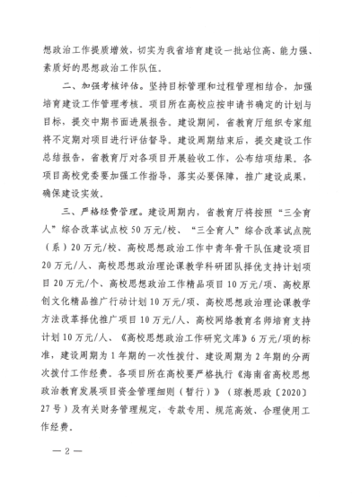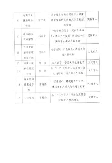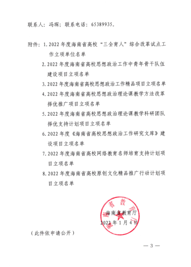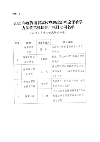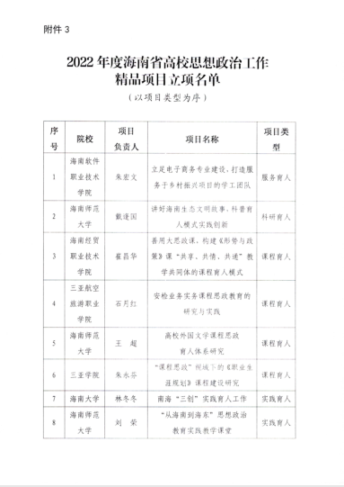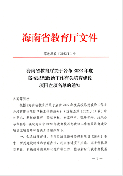 我院思政部2个项目入选海南省2022年度高校思想政治工作有关培育建设项目立项名单的通知
