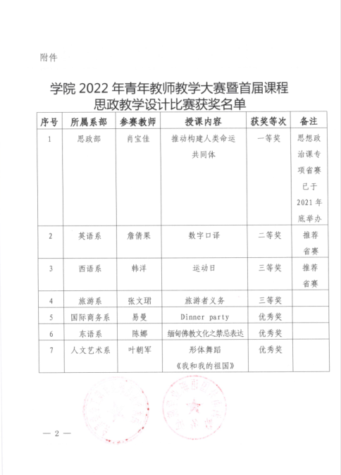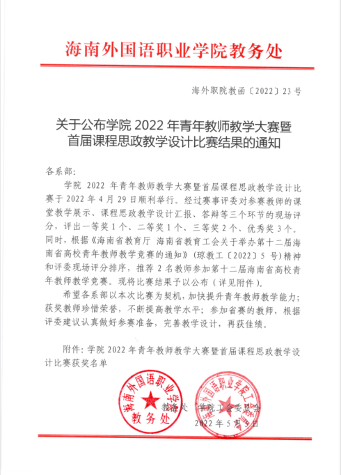 关于公布2022年青年教师教学大赛暨首届课程思政教学设计比赛结果的通知