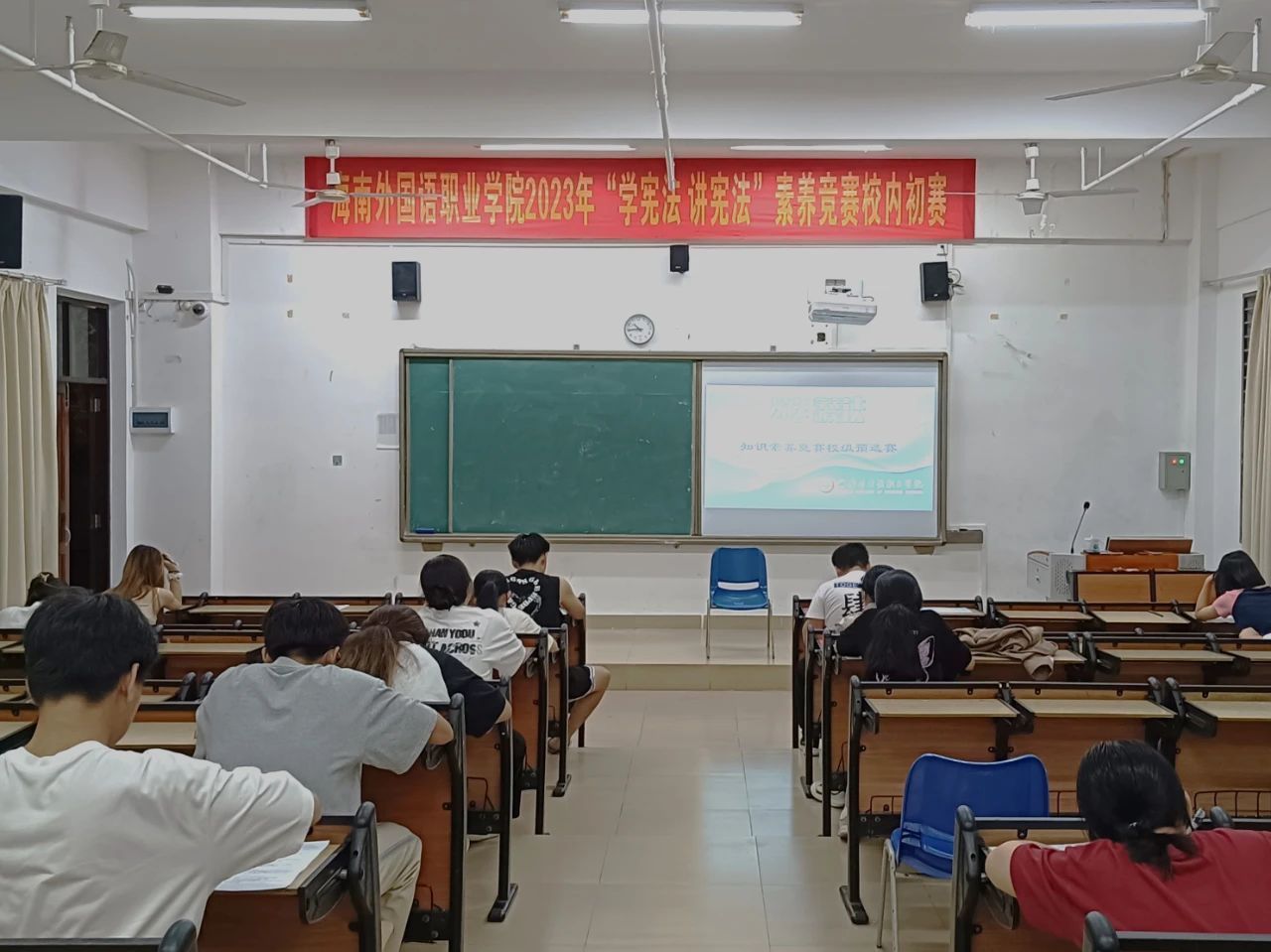 为深入学习宣传和贯彻实施宪法的有关精神,在学生中普及宪法知识、弘扬宪法精神、树立宪法权威,beat365积极响应海南省教育厅号召,举办“学宪法 讲宪法”主题比赛。9月13-14日,在BE102教室、图书馆4楼VR教室分别举办知识素养竞赛和演讲比赛。