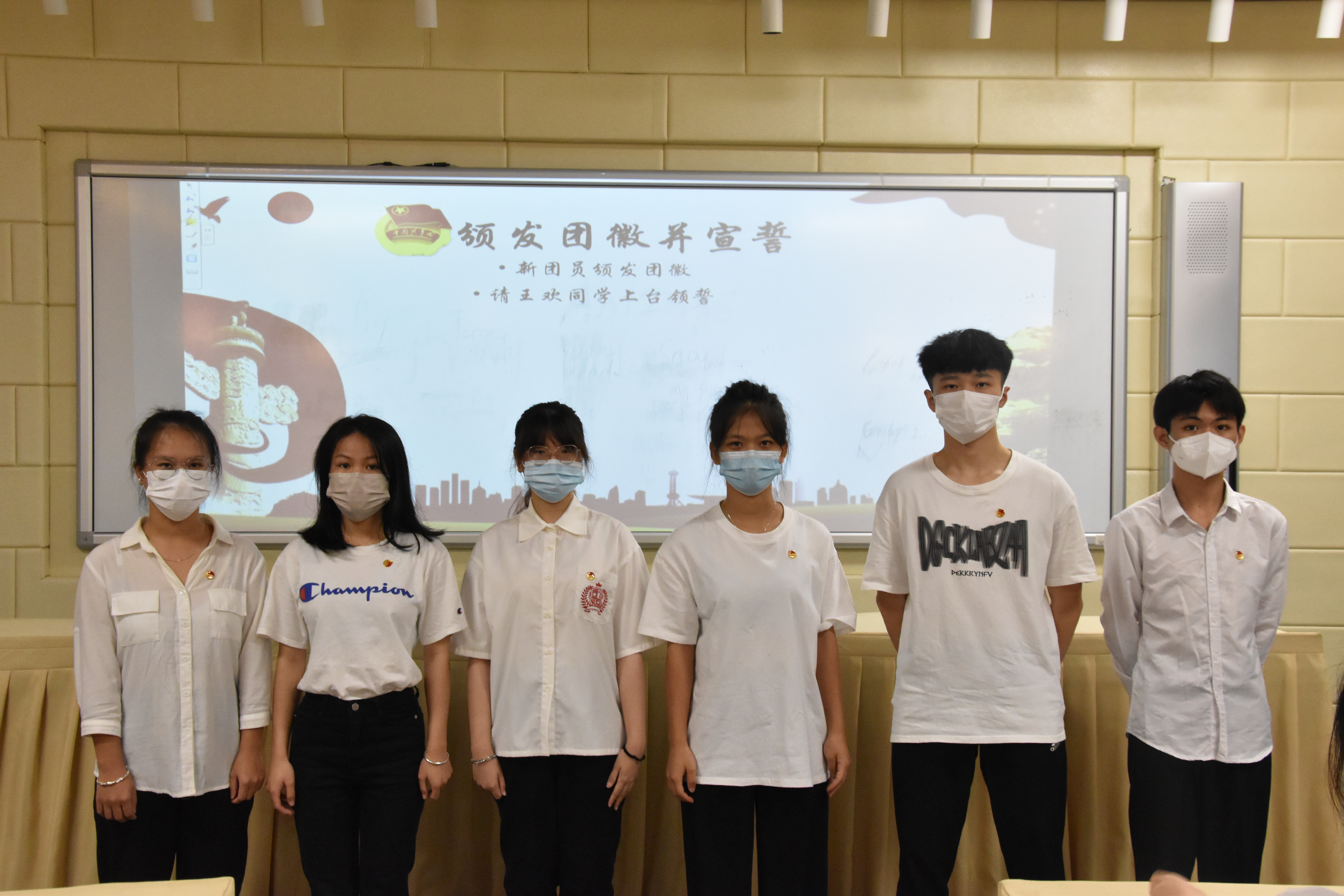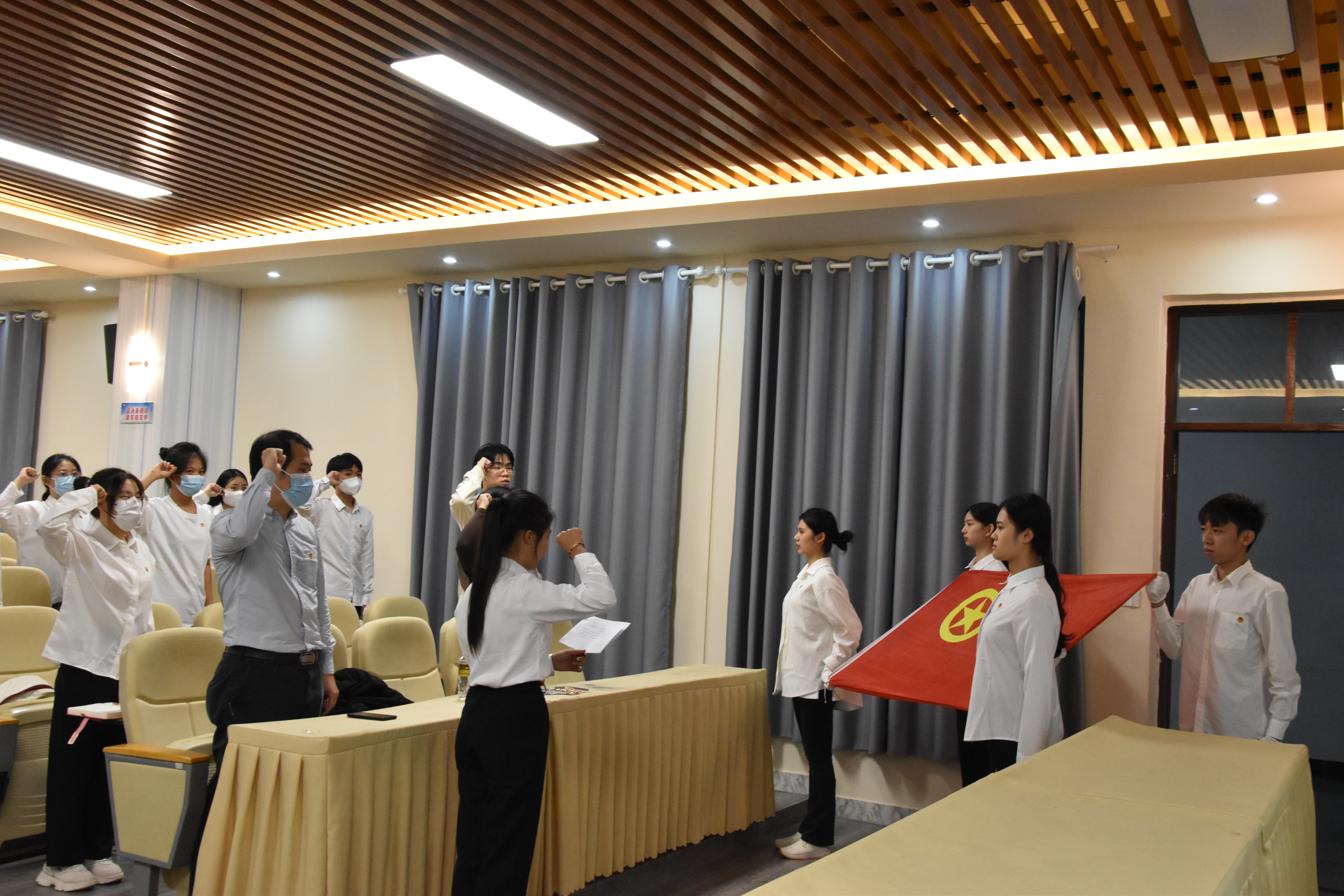 在国旗护卫队的守护下,鲜艳的团旗徐徐展开。全体新团员在领誓人的带领下,面向团旗,庄严宣誓。在铮铮誓言中,他们许下对自己、对共青团组织和对党的承诺,自此成为一名优秀的共青团成员。
