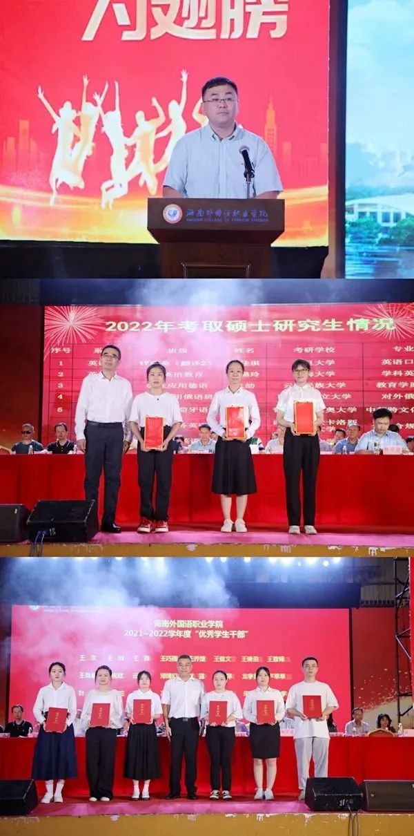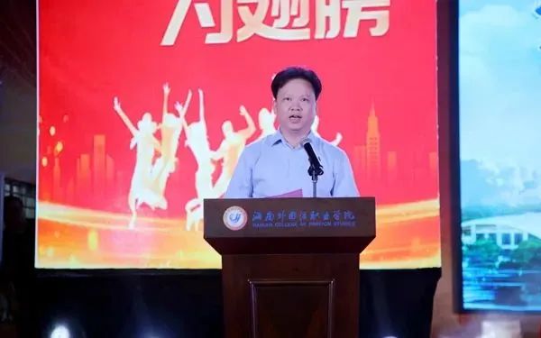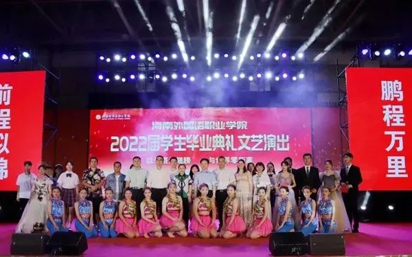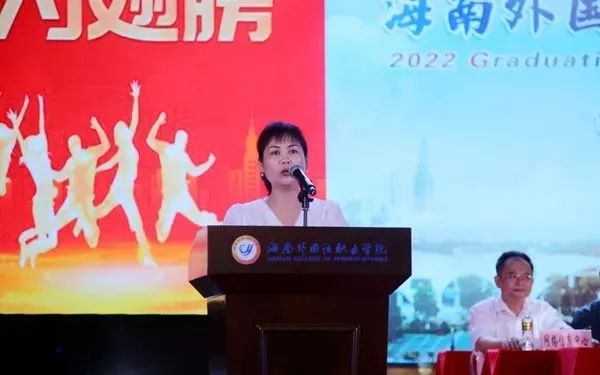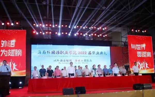 北京外国语大学原副校长闫国华,湖南民族职业学院学前教育学院副院长郭杰,安徽财贸职业学院公共教学部副主任陈伟,外语教学与研究出版有限责任公司外语分社社长李淑静,海南普技教育服务有限公司董事长蔡凤清,融通旅业集团三亚大东海壹号度假村总经理刘聚德等嘉宾受邀出席我院2022届毕业生毕业典礼。