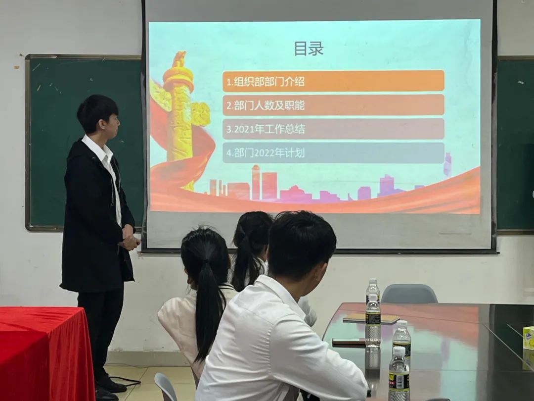 12月26日,我院团委于多媒体11召开了2021学年度团学干部述职大会。学院团委韩琪老师、周宵老师及全体团委和学生会各部门负责人出席此次会议。