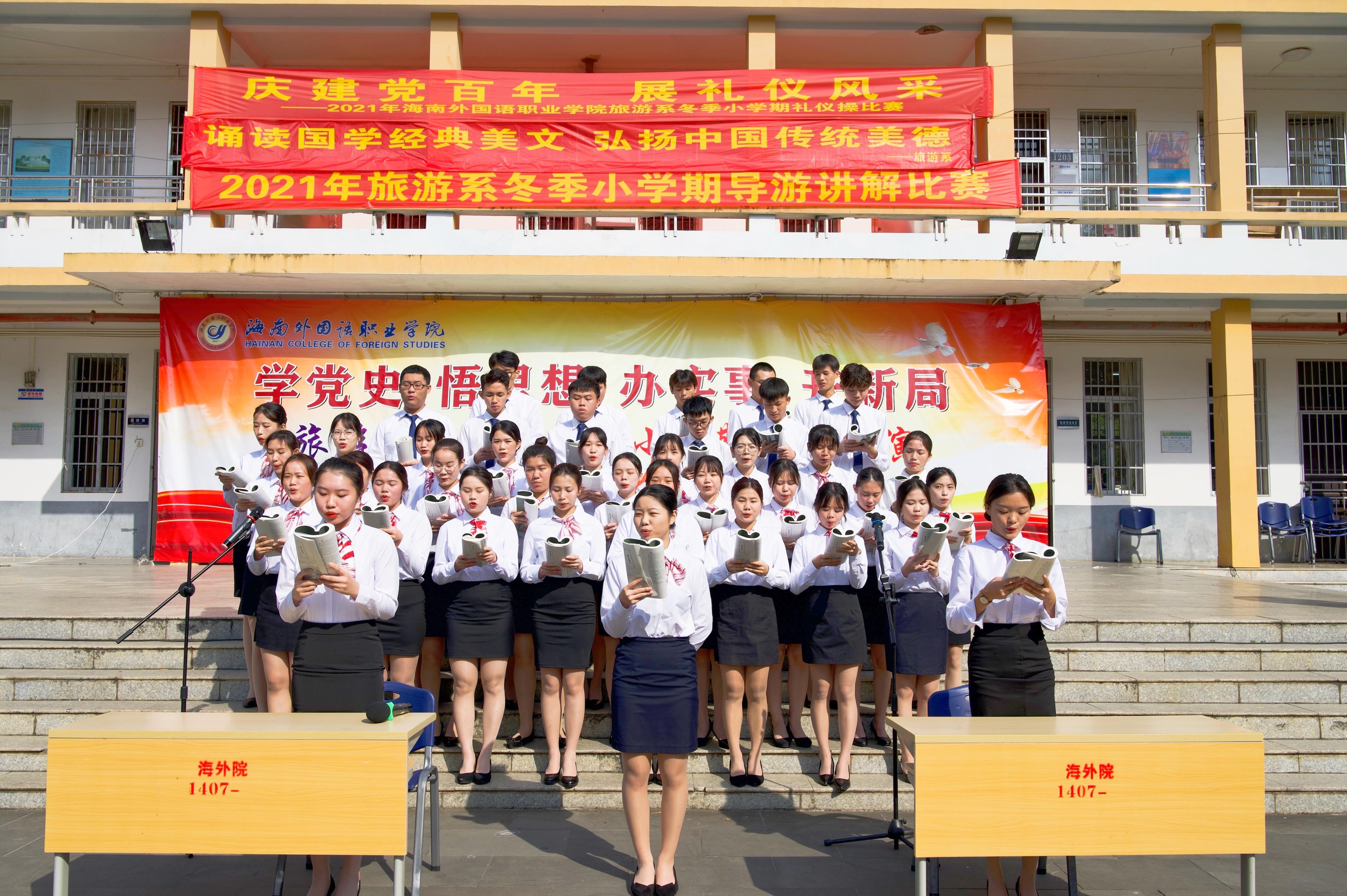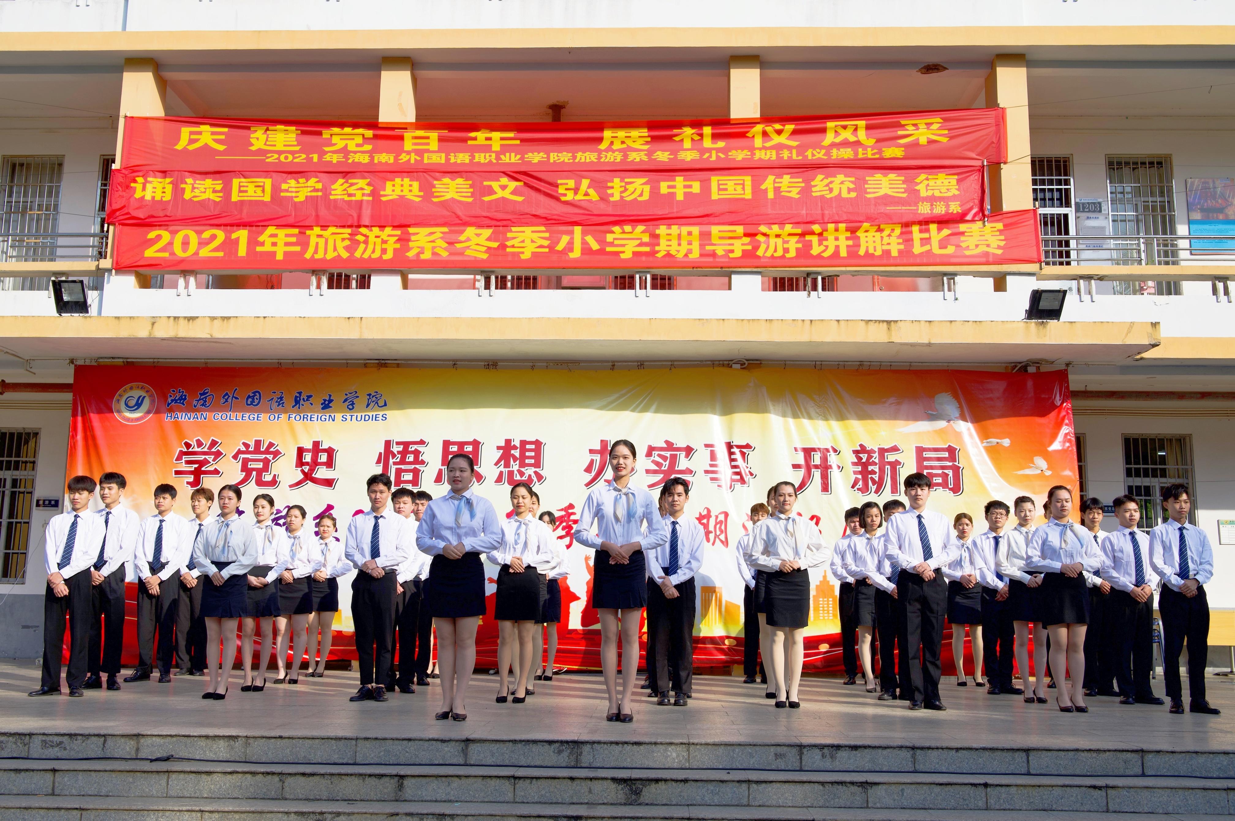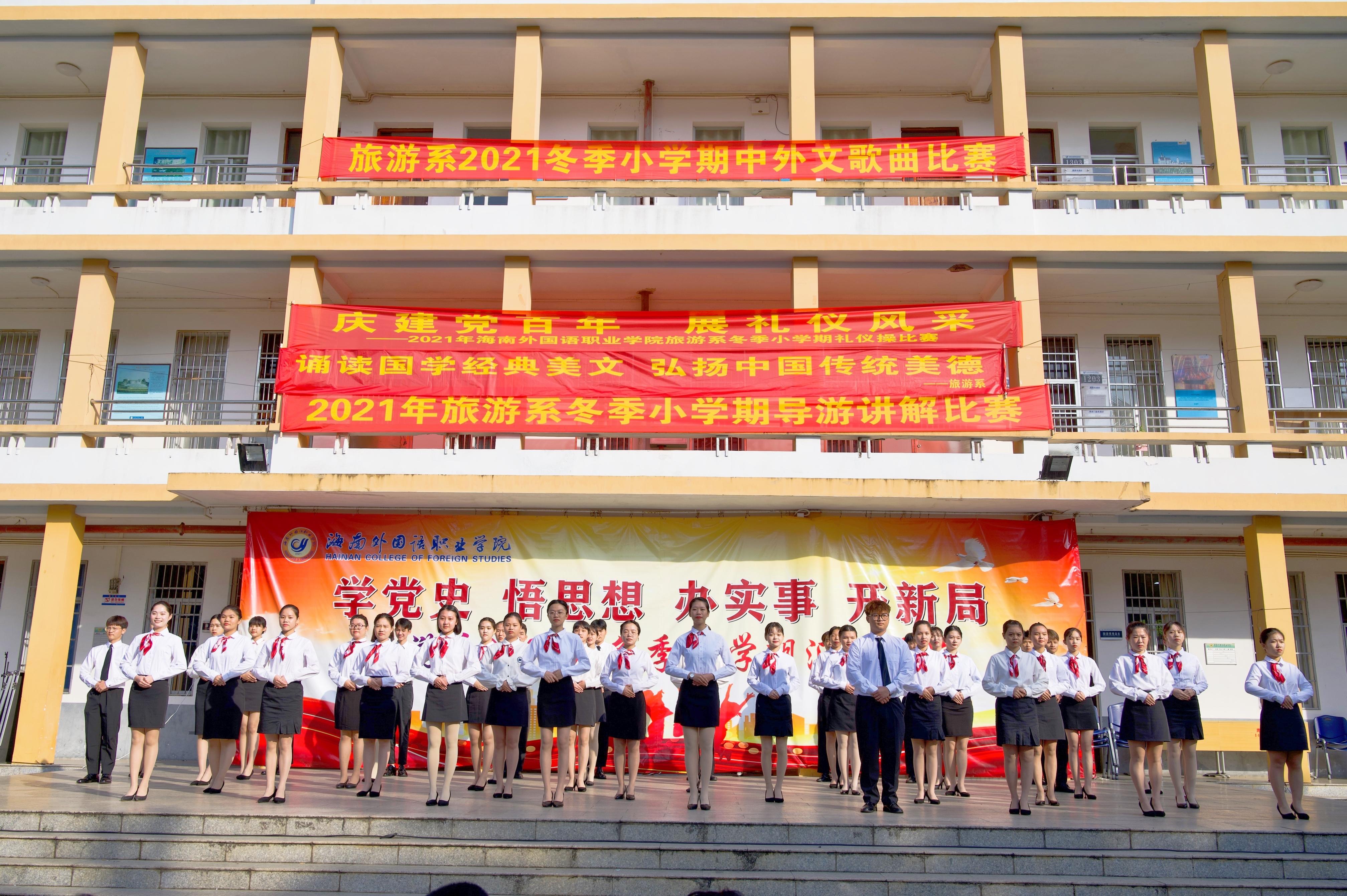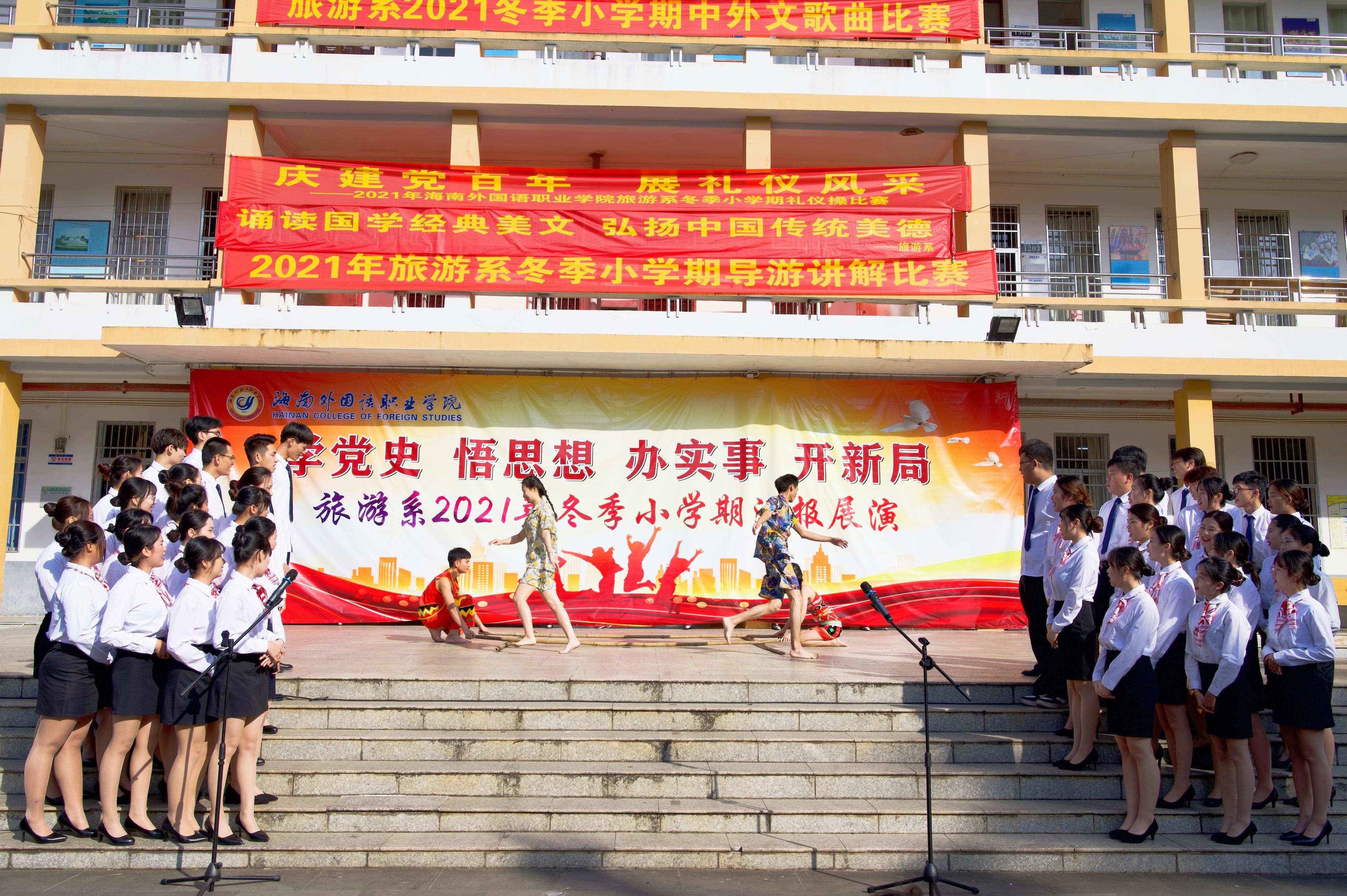 11月26日上午,2021年beat365官方网站旅游系冬季小学期汇演在一号教学楼如期举行。出席本次汇演的有旅游系党总支林明霞书记、学院督导委林勤副主任、李朝霞老师以及旅游系全体教师和非毕业班的同学们。