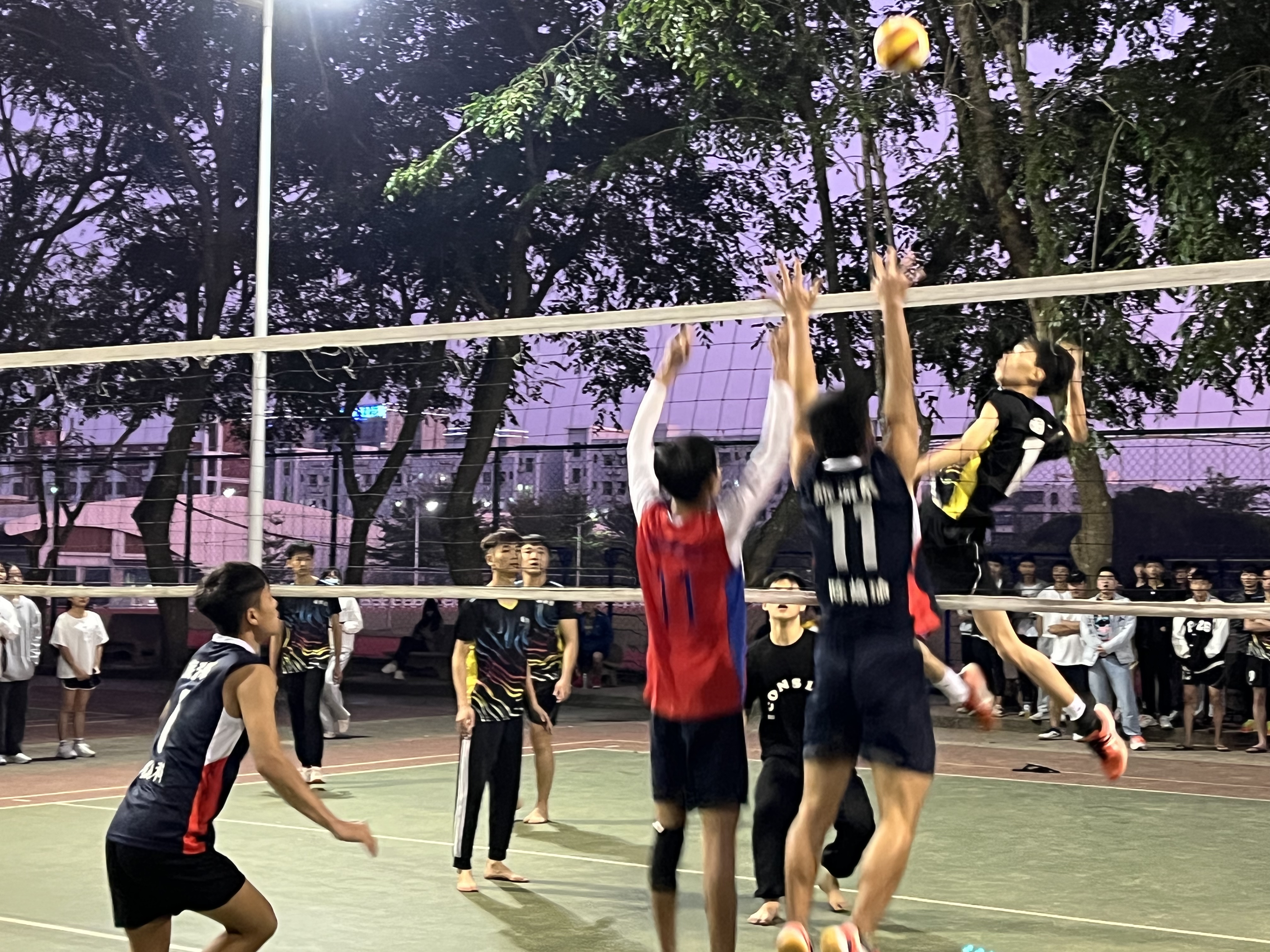 发球过网鲤鱼跃,扣球拦网猛如虎;战术过人得高分,掌声雷动是你的。