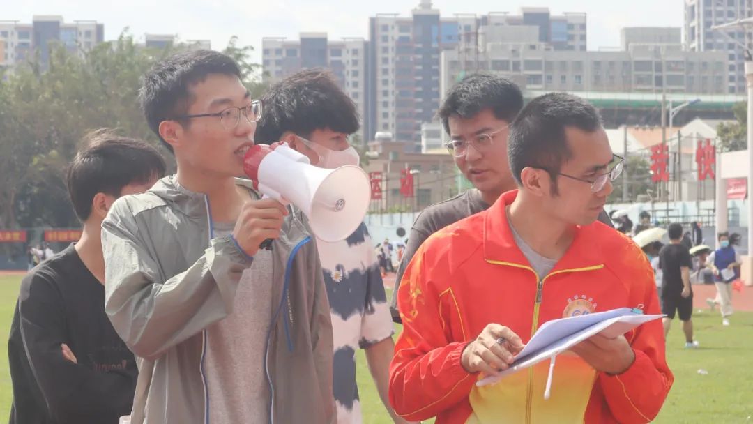 他们是公正的使者,是幕后协助的传声筒;是无私奉献的代名词,是运动会上一抹别样的风景线。