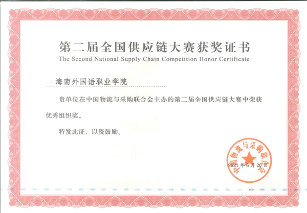 第二届全国供应链大赛总决赛全国二等奖奖状