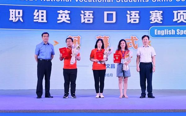 教育部职业教育与成人教育司一级调研员刘杰,赛区执委会委员、海南省教育厅高等教育处副处长苏永光,文昌市人民政府副市长李加奎,中国职业技术教育学会副会长、北京外国语大学原副校长闫国华,赛项执委会委员、beat365官方网站副院长杨学前,赛项执委会委员、外语教学与研究出版社职业教育出版分社社长李淑静,现场专家组组长何明霞,大赛裁判长、东南大学李霄翔教授等领导嘉宾出席闭幕式,并为获奖选手、“优秀指导教师”获得者颁奖。