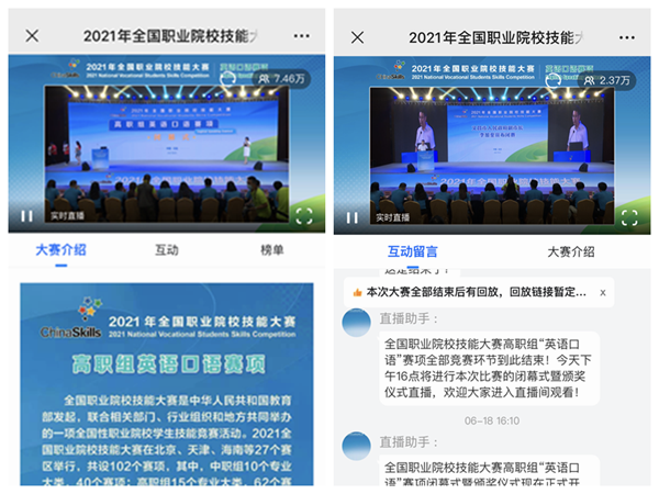 世界在呼唤沟通,中国在走向世界。2021年全国职业院校技能大赛高职组英语口语赛项总决赛,展现了中国优良传统、优秀文化和中国精神,展示了我国职业教育外语教学发展与改革的丰硕成果,对职业院校办出特色、办出水平、服务国家发展起到“树旗、导航、定标、催化”的作用。