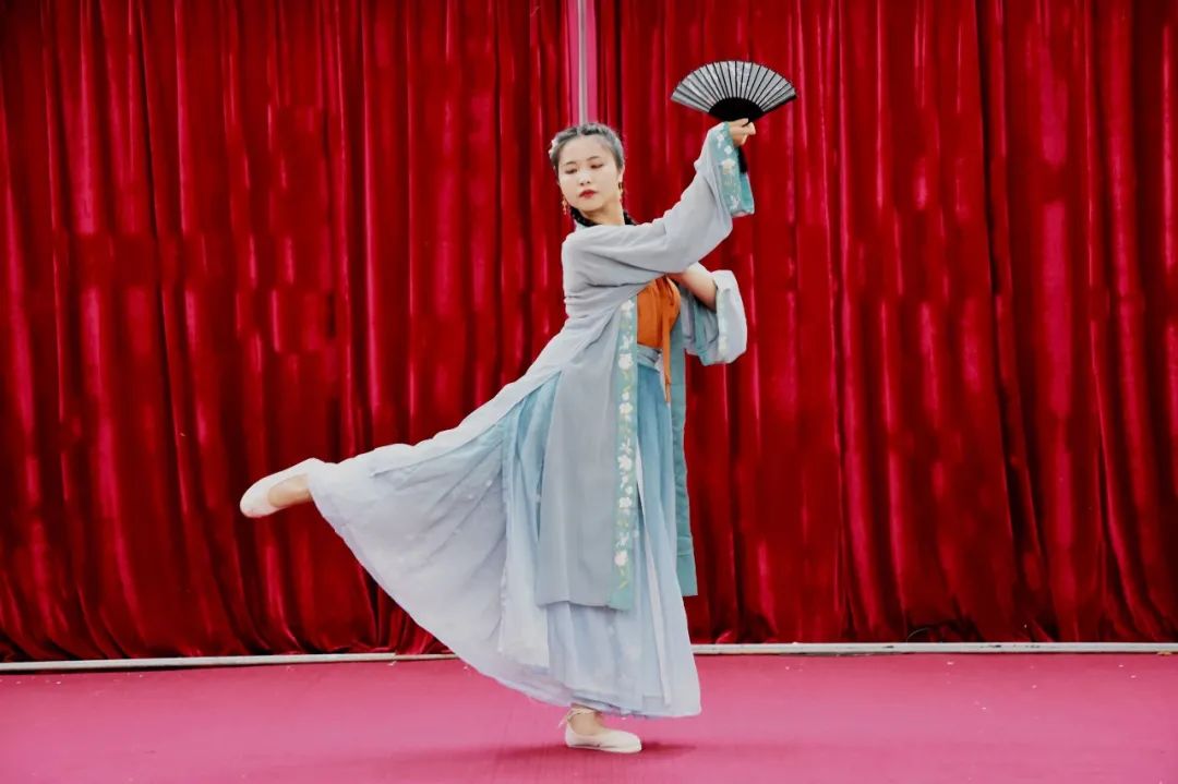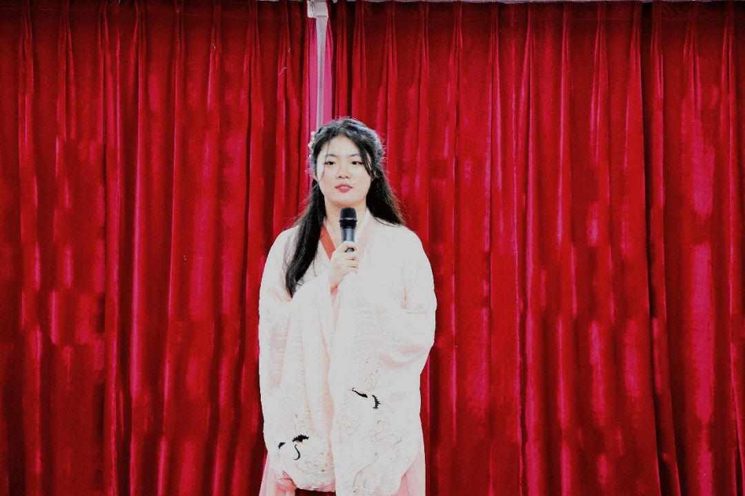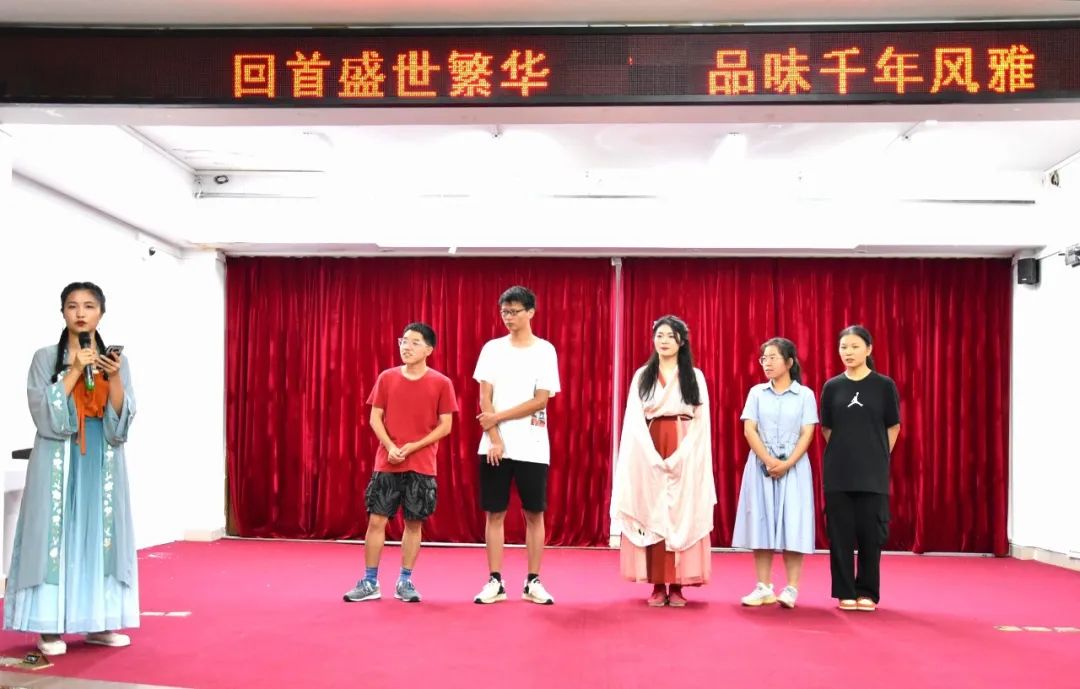 “舞低杨柳楼心月,歌尽桃花扇底风”。一场《盛世回首》的走秀,社团成员们迈着自信大方的台步,衣袂飞扬,举手投足之间尽显古典风韵。