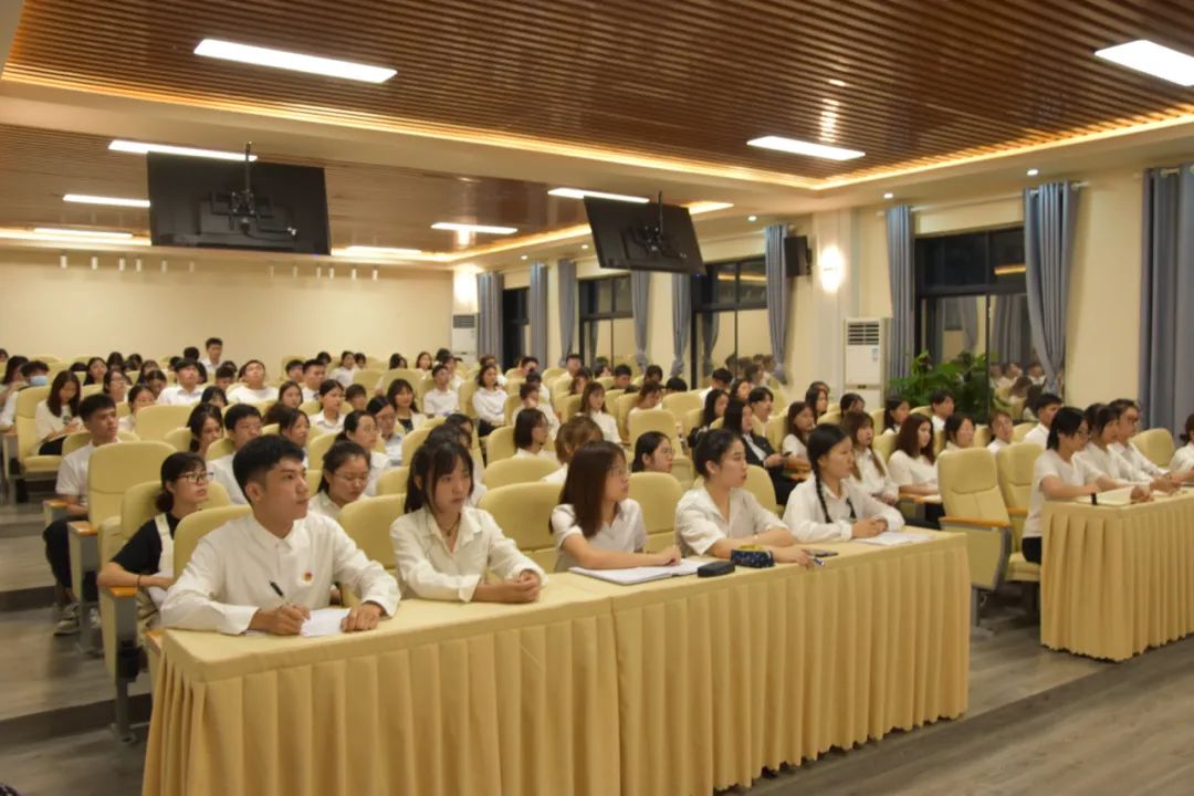团委周宵老师通过对团的组织系统、学生会的组织形式和当代青年肩负的使命进行详细阐述,并对全体团学干部提出三点期望:一是坚定理想信念,高举旗帜跟党走,培育高尚品格,练就过硬本领;二是要提高自身的政治站位,把学习马克思主义理论与党史紧密结合起来,做思想的引领者;三是立足实践,扎实理论功底,结合“青马工程”中的所学所思,争做青年政治骨干。